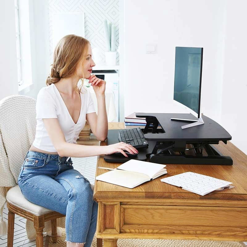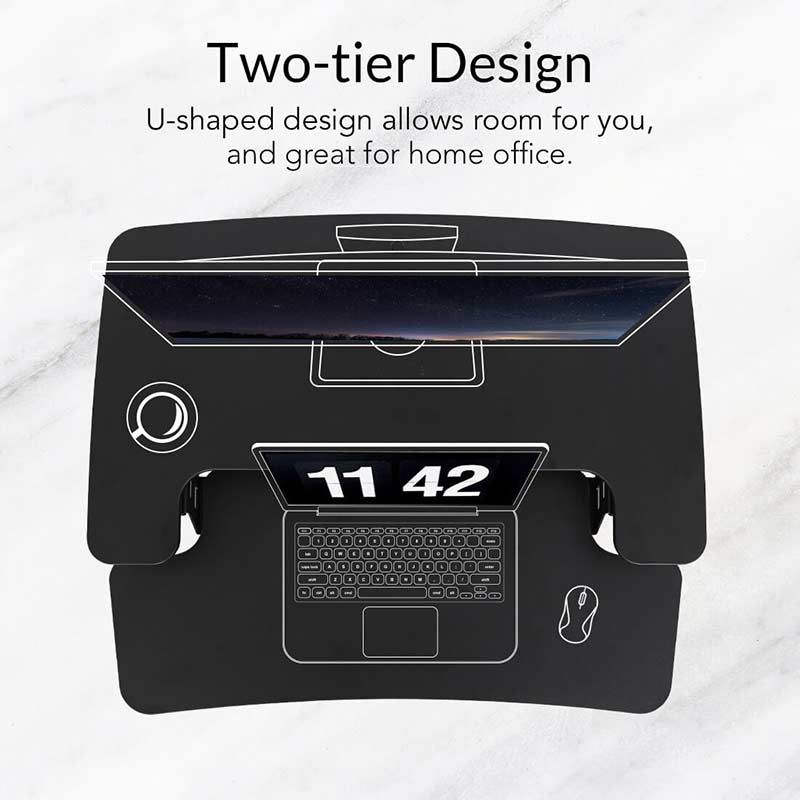 The Arca 28 standing desk converter can be lifted with just one finger due to its proprietary industrial-strength hydraulic pistons. Lift your entire workstation effortlessly.