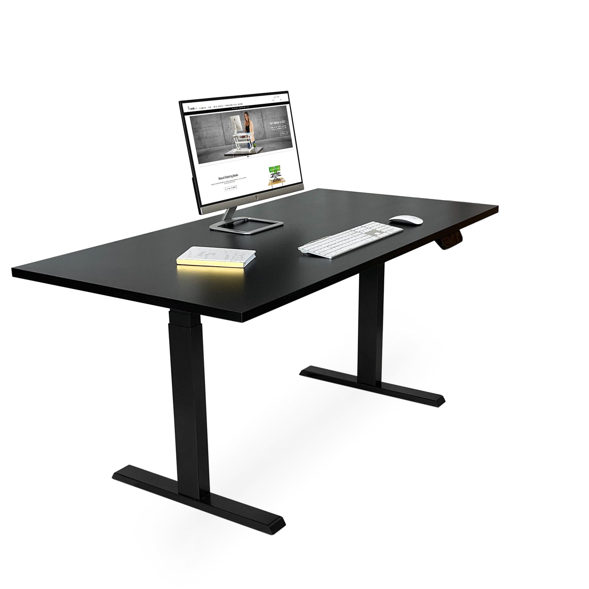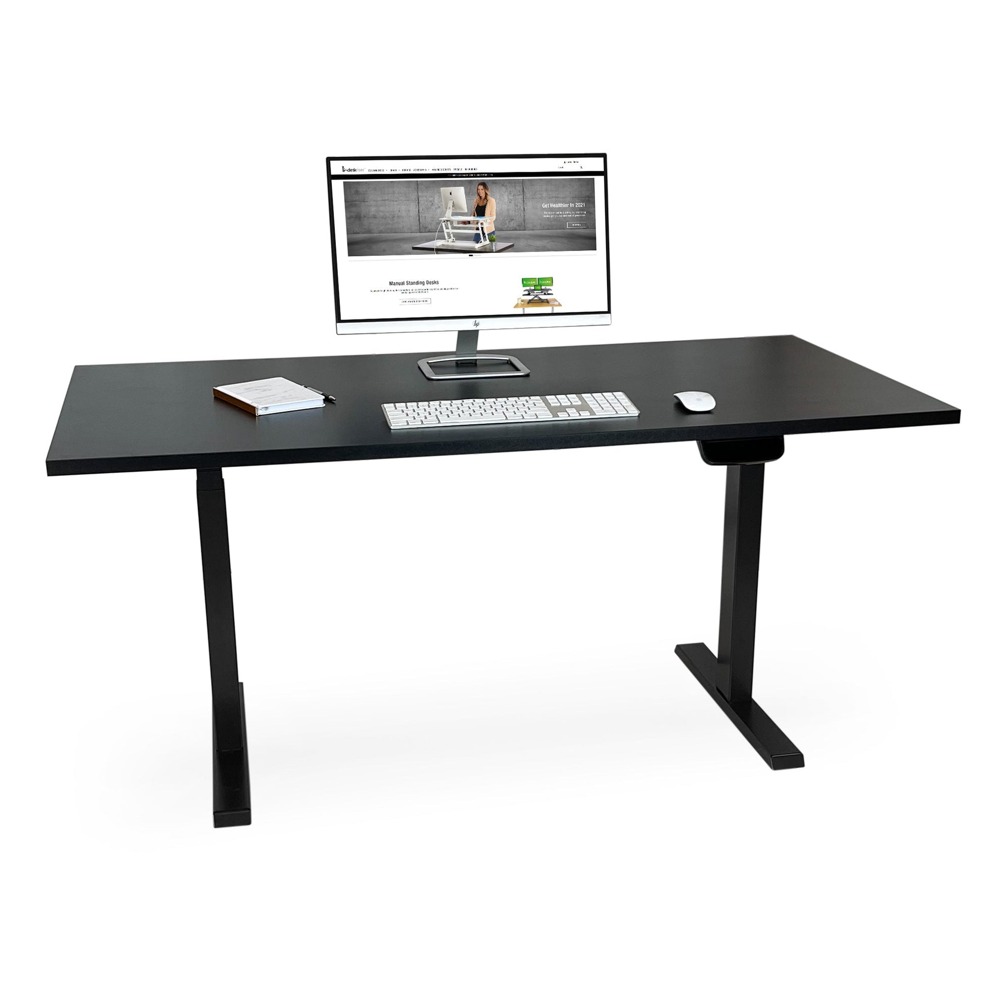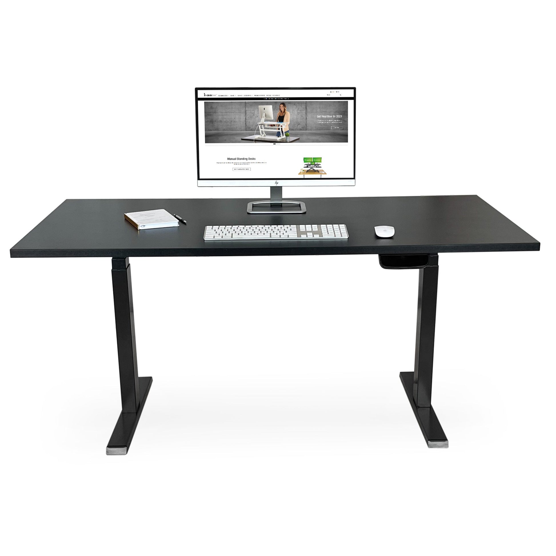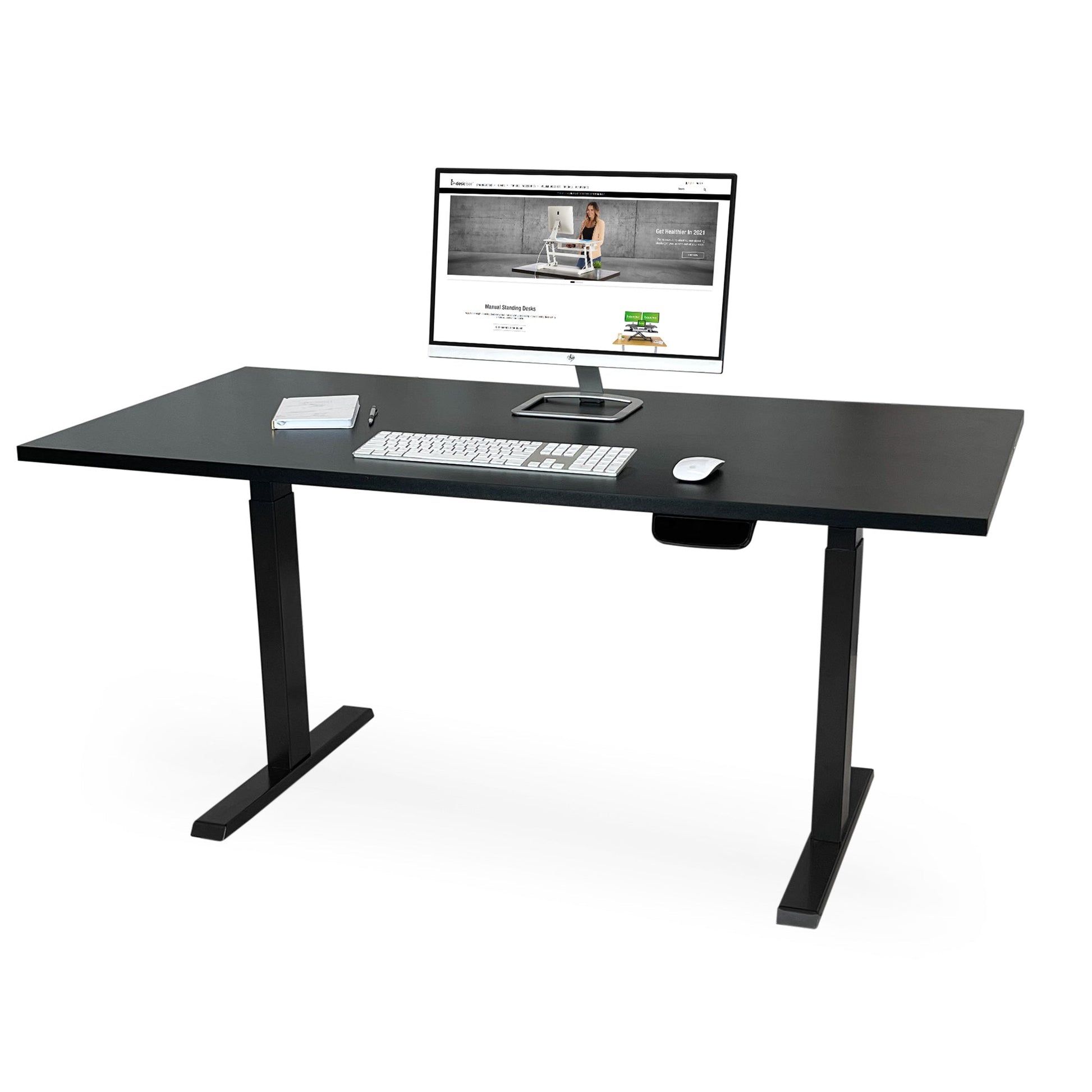 The Executive Electric Desk Riser is a heavy duty full sized electric standing desk that is meant to replace your existing office desk. Features a dual motor frame with an elegant touch screen that allows you to move from sit to stand in seconds, 3 memory settings that remember your ideal sitting and standing heights, and a timer that reminds you to switch from sitting to standing throughout the day.
