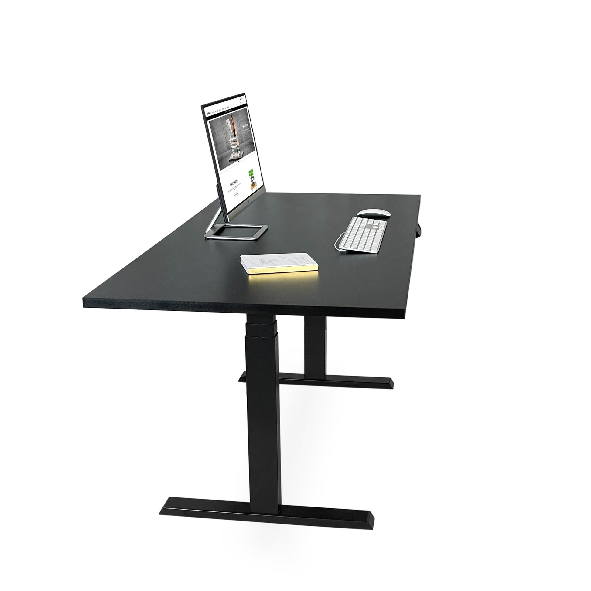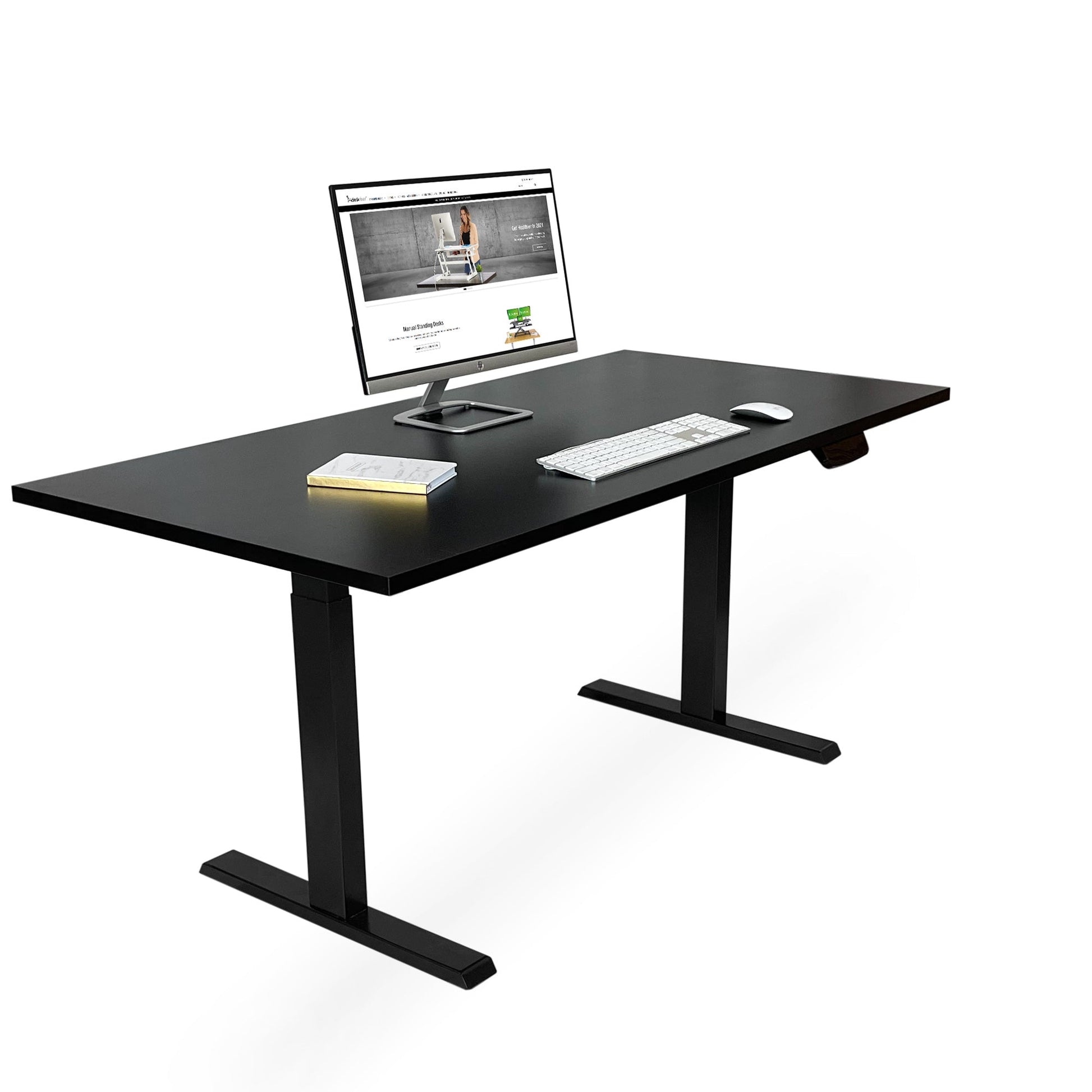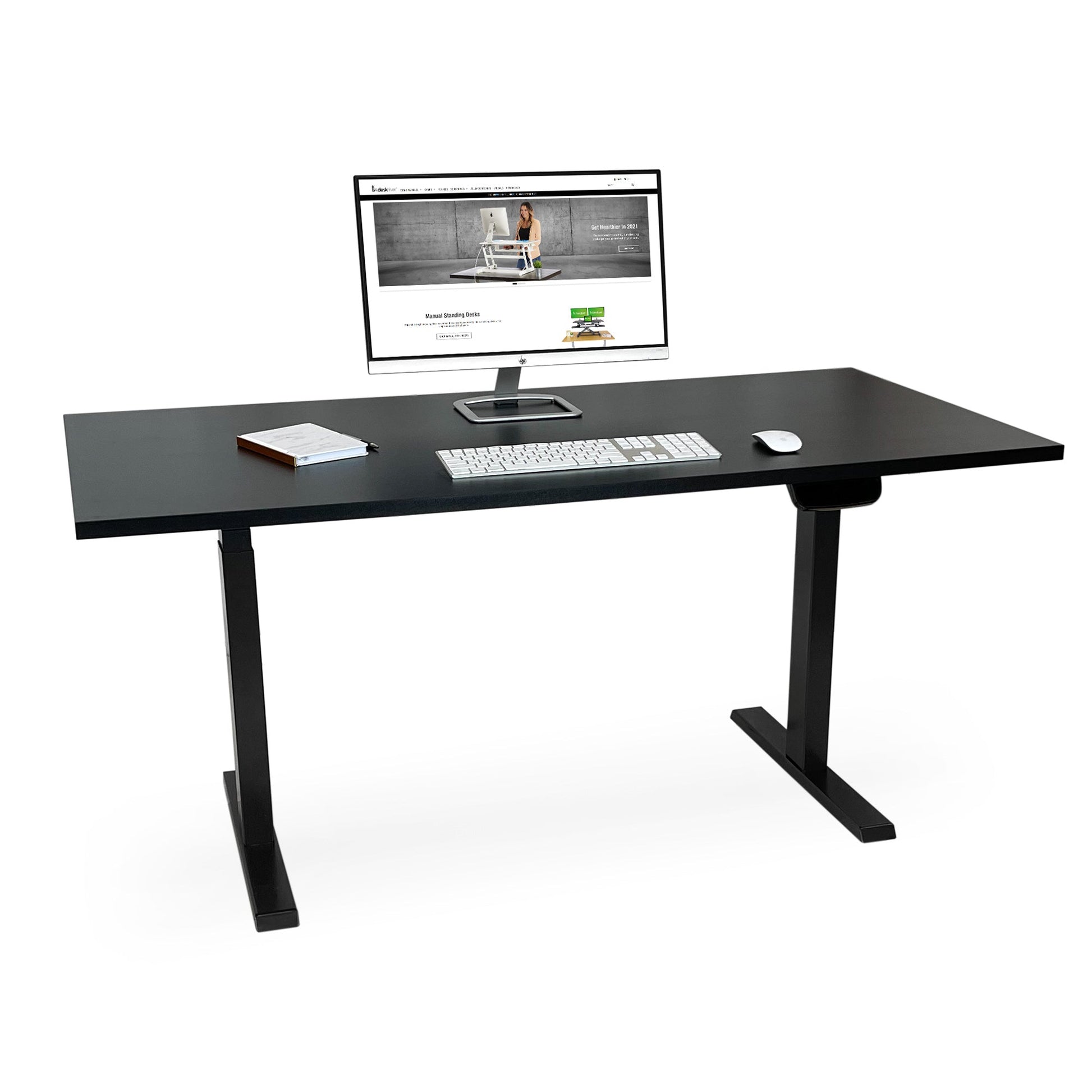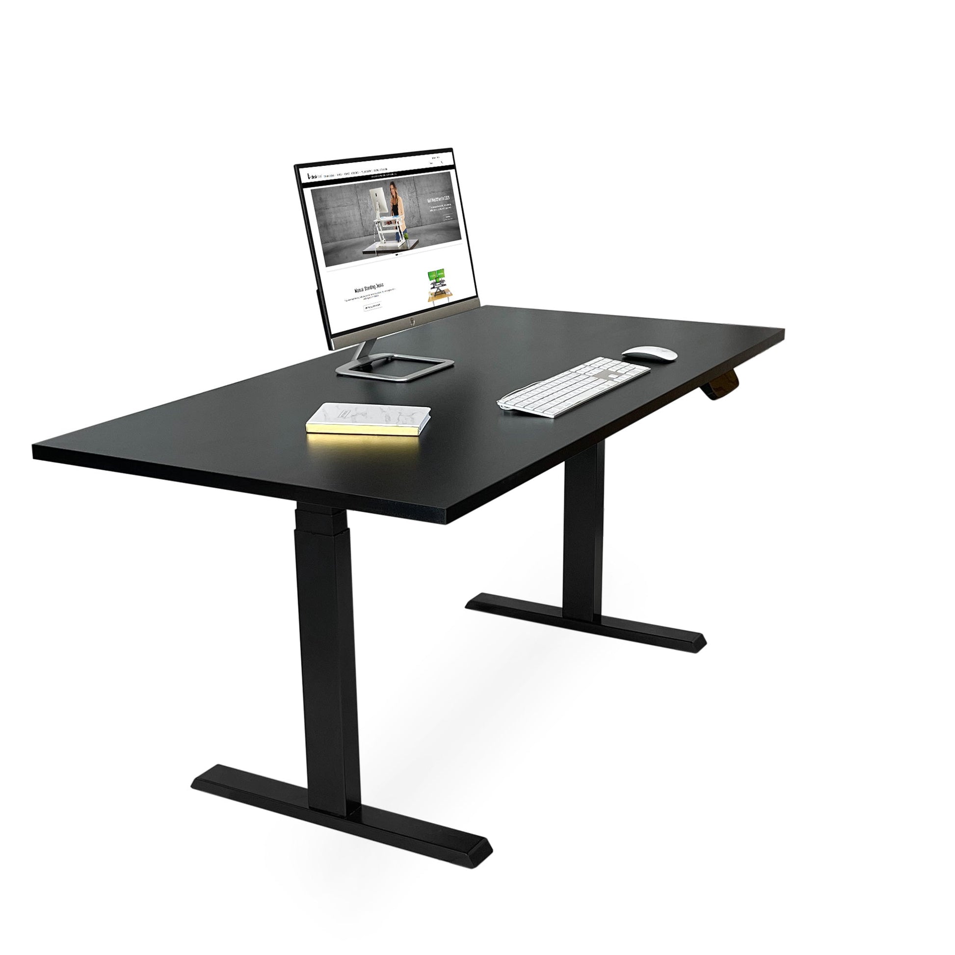The Executive Electric Desk Riser is a heavy duty full sized electric standing desk that is meant to replace your existing office desk. Features a dual motor frame with an elegant touch screen that allows you to move from sit to stand in seconds, 3 memory settings that remember your ideal sitting and standing heights, and a timer that reminds you to switch from sitting to standing throughout the day.