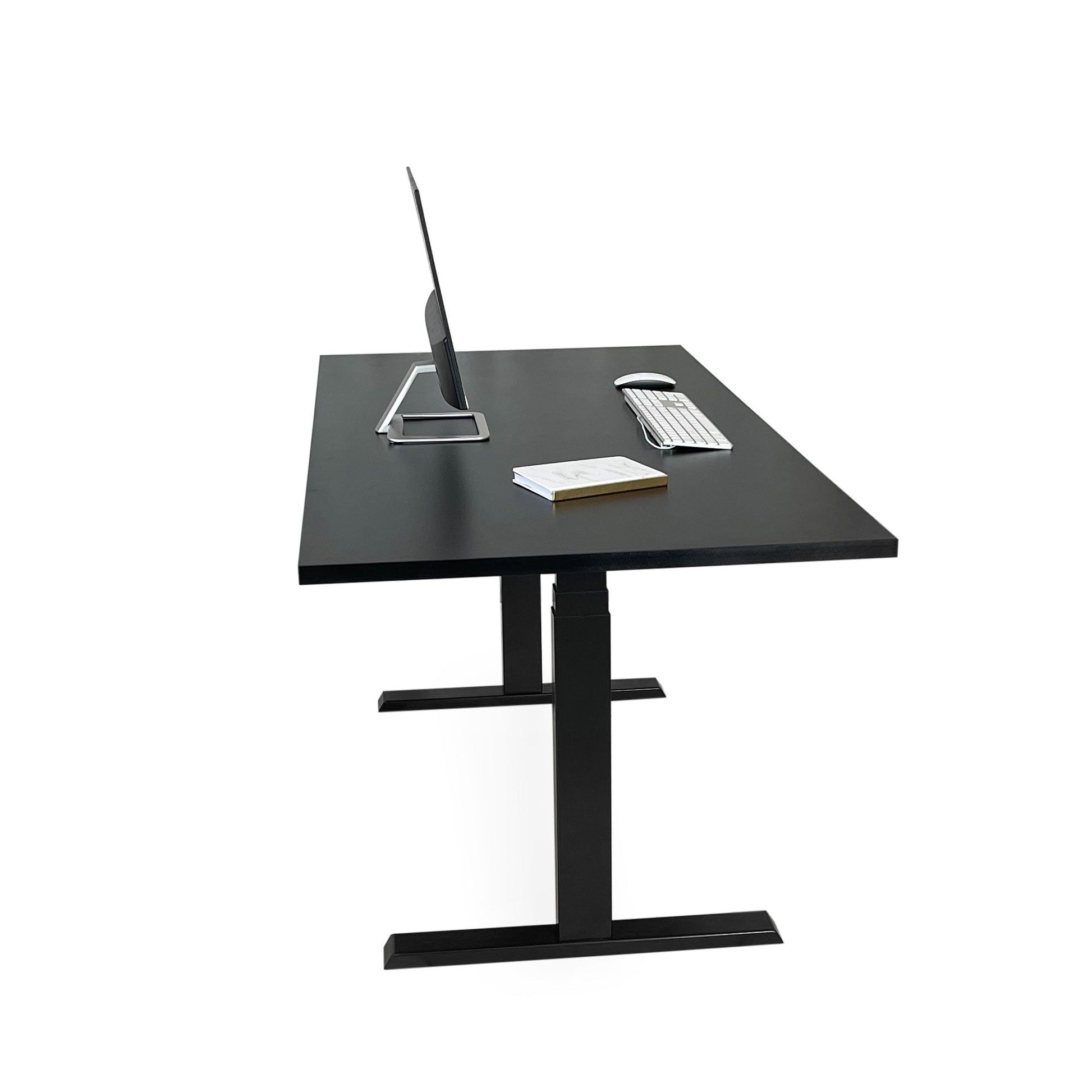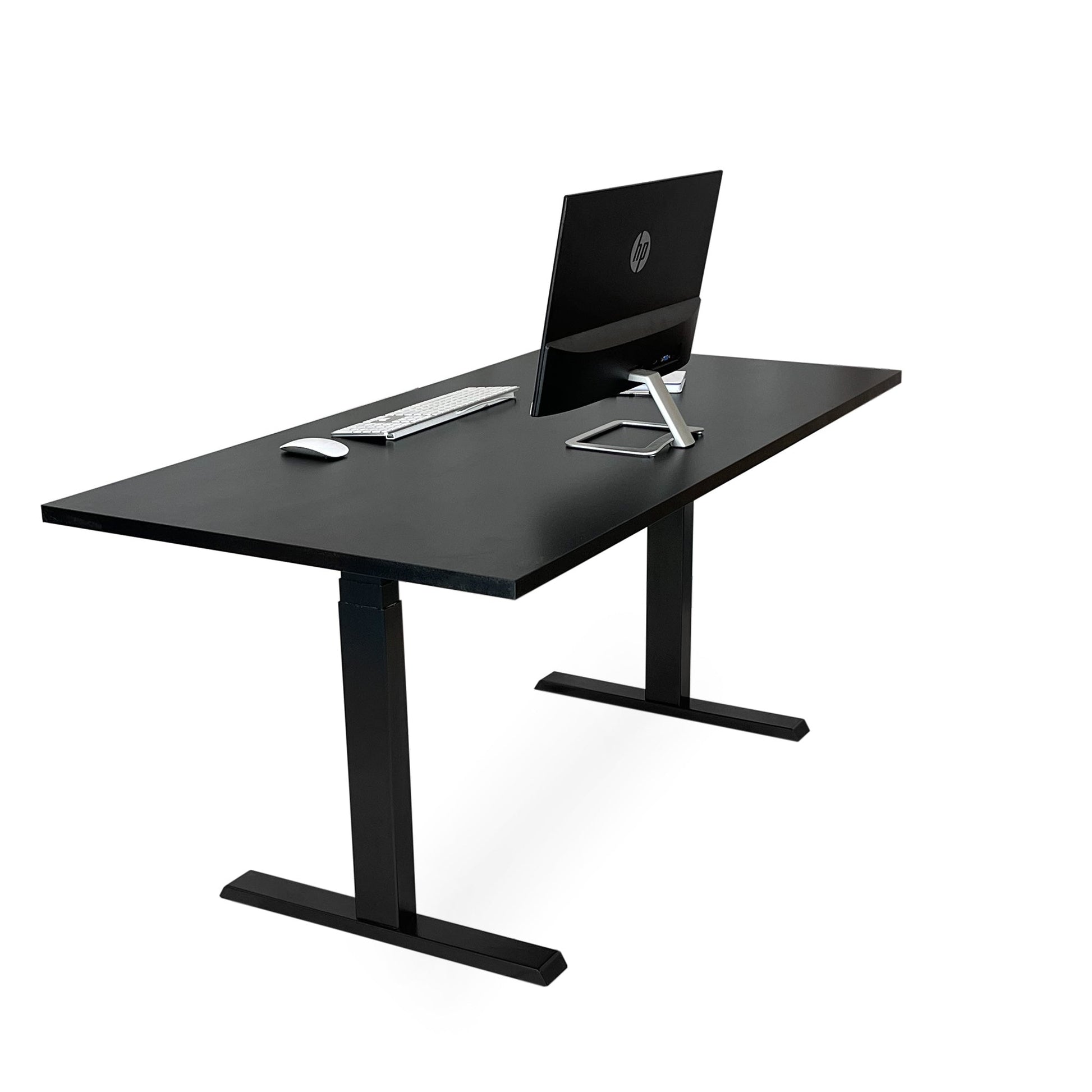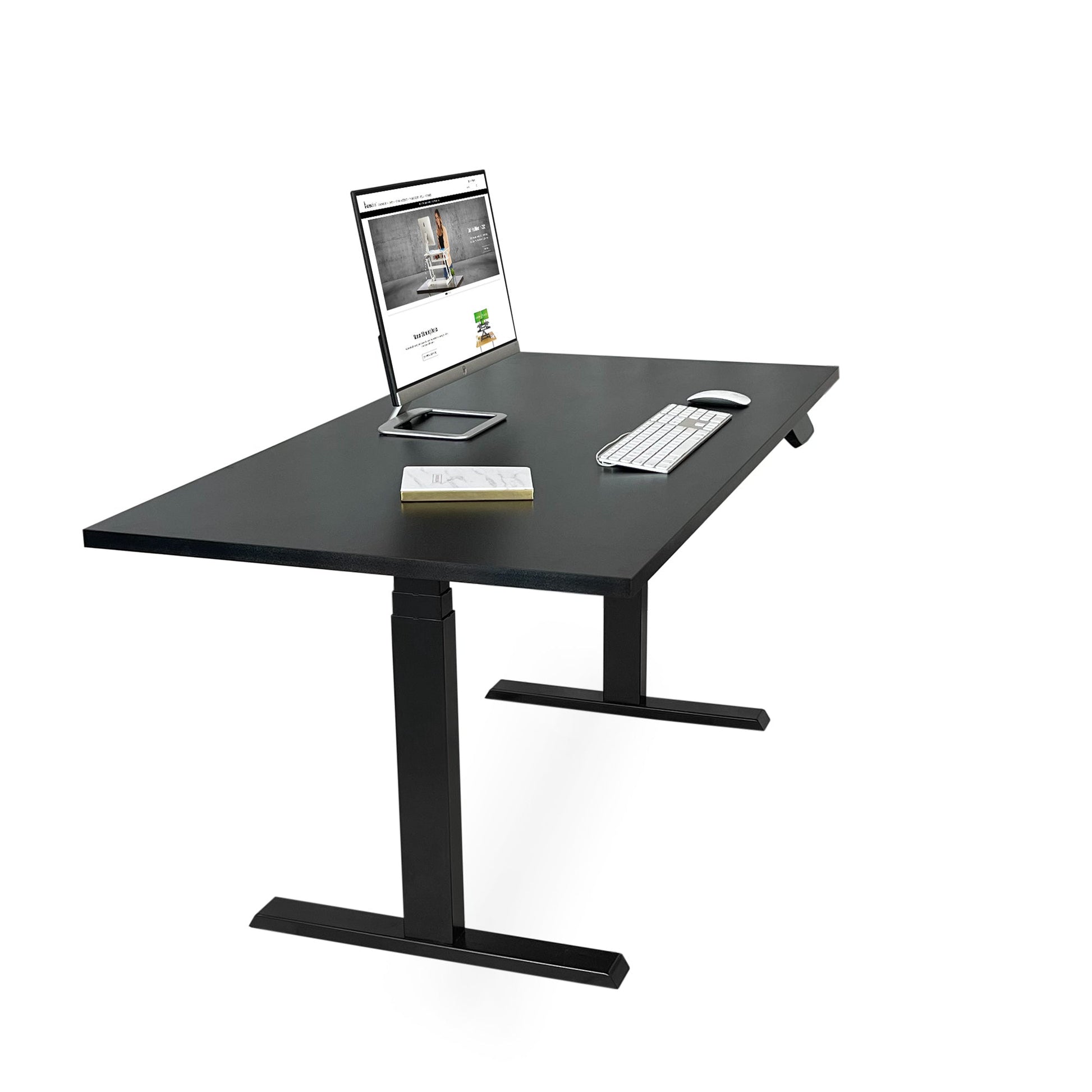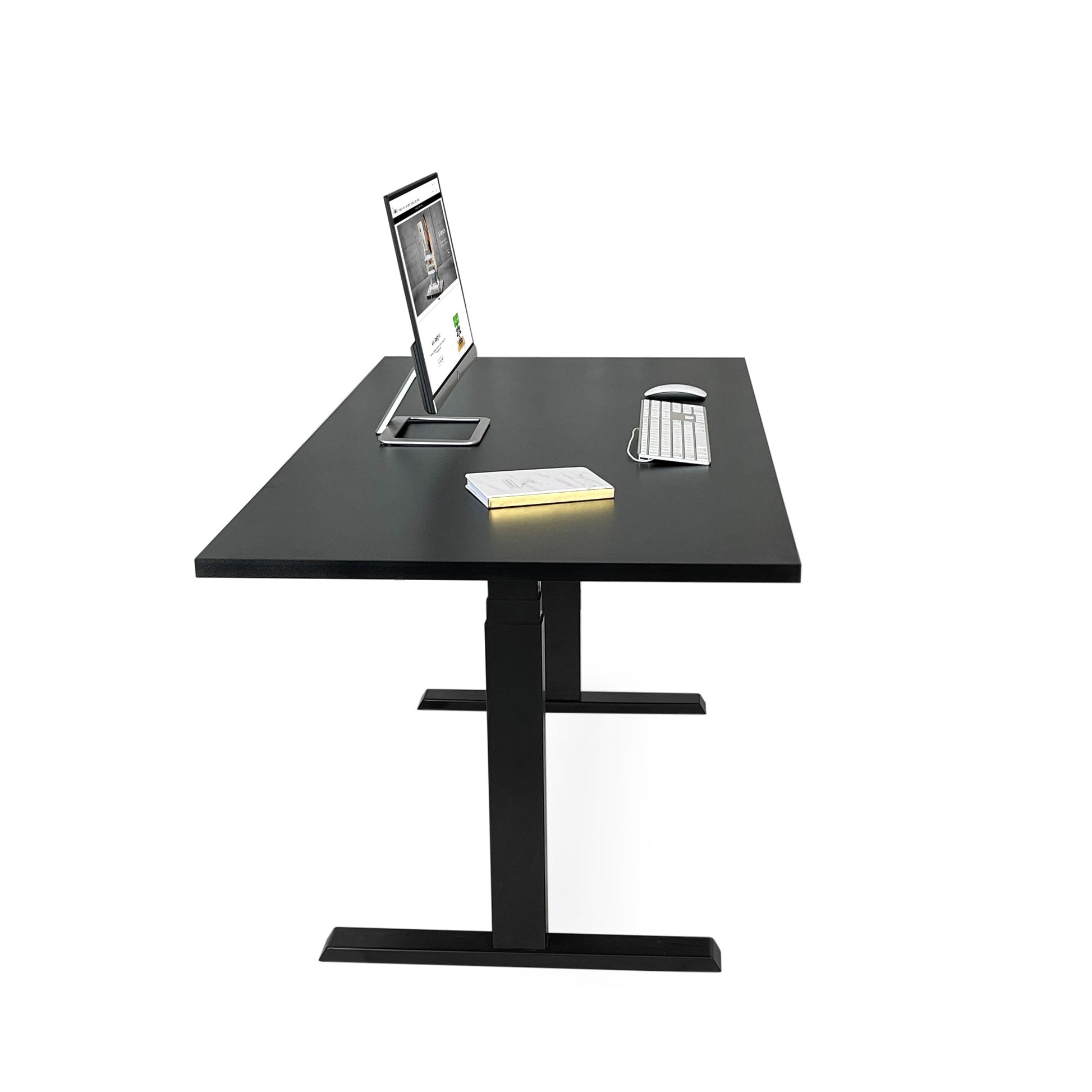 The Executive Electric Desk Riser is a heavy duty full sized electric standing desk that is meant to replace your existing office desk. Features a dual motor frame with an elegant touch screen that allows you to move from sit to stand in seconds, 3 memory settings that remember your ideal sitting and standing heights, and a timer that reminds you to switch from sitting to standing throughout the day.