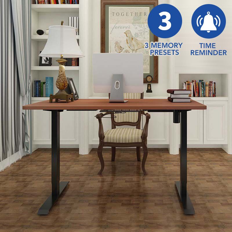 The Full Electric Standing Desk is a heavy duty full sized electric standing desk that is meant to replace your existing office desk. Features a dual motor frame with an elegant touch screen that allows you to move from sit to stand in seconds, 3 memory settings that remember your ideal sitting and standing heights, and a timer that reminds you to switch from sitting to standing throughout the day.