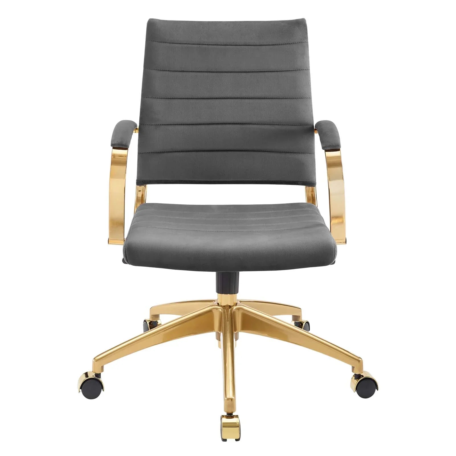 The ergonomic design offers unparalleled support, featuring a high-quality ribbed velvet back that contours naturally to your spine, promoting an ideal posture during long hours of work. The generous seat cushion, lavishly padded and enveloped in a stain-resistant performance velvet, provides a plush yet durable surface for all-day comfort.