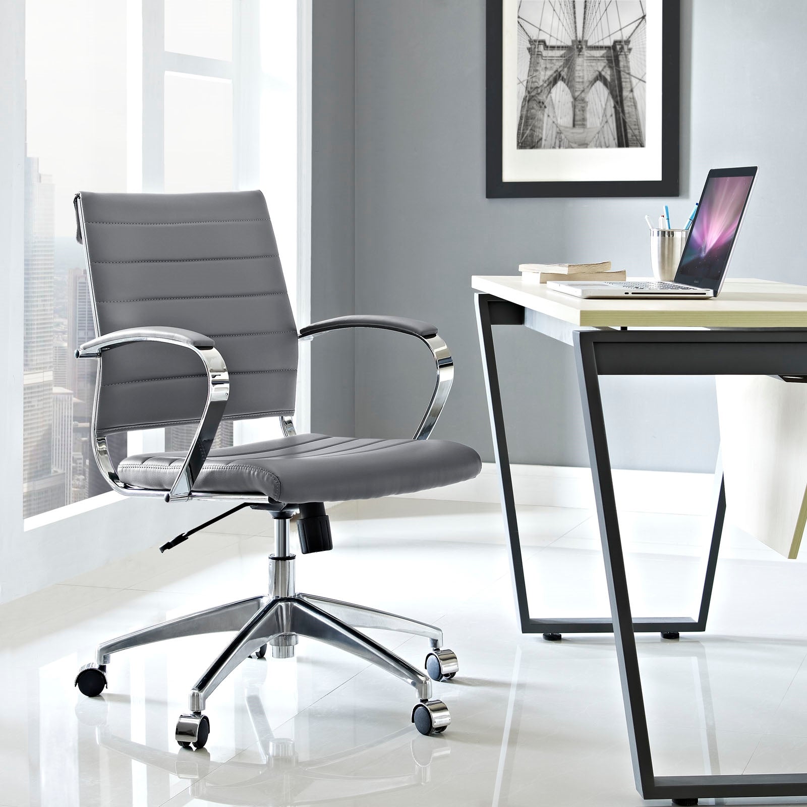 Sleek ribbed vinyl office chair