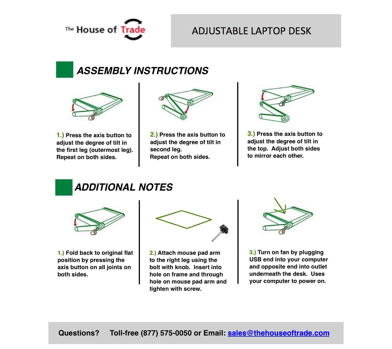 The versatile adjustable Laptop Stand is a user-friendly, smartly designed lap desk / standing desk / tv tray or whatever you choose to use it for. It can fold down flat, weighs only 3 pounds, yet is sturdy enough to hold 17 inch laptops. It comes equipped with a dual layer heavy duty reinforced aluminum alloy tray, fully adjustable locking joints on each side that allow you to adjust the angle of the top tray, and best of all, a cooling fan to keep your laptop from overheating. Ships fully assembled.