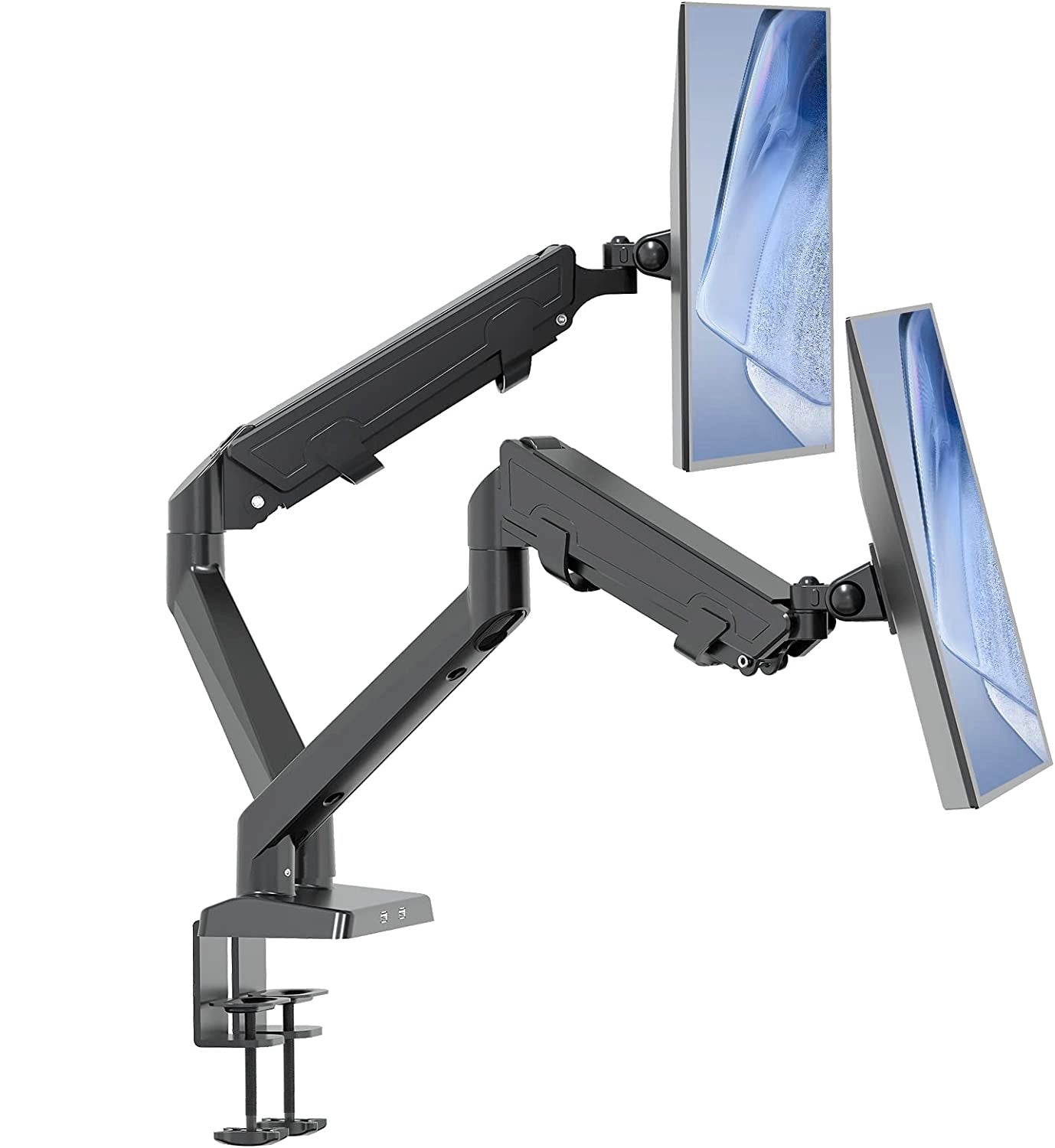 The Percy Dual Monitor Arms is a dual monitor desk mount that will help you free up space on your desktop and optimize your health and wellness at work. The Percy incorporates a quick-release VESA plate which makes installation a total and complete breeze. Just squeeze the lever and snap your monitors into place.