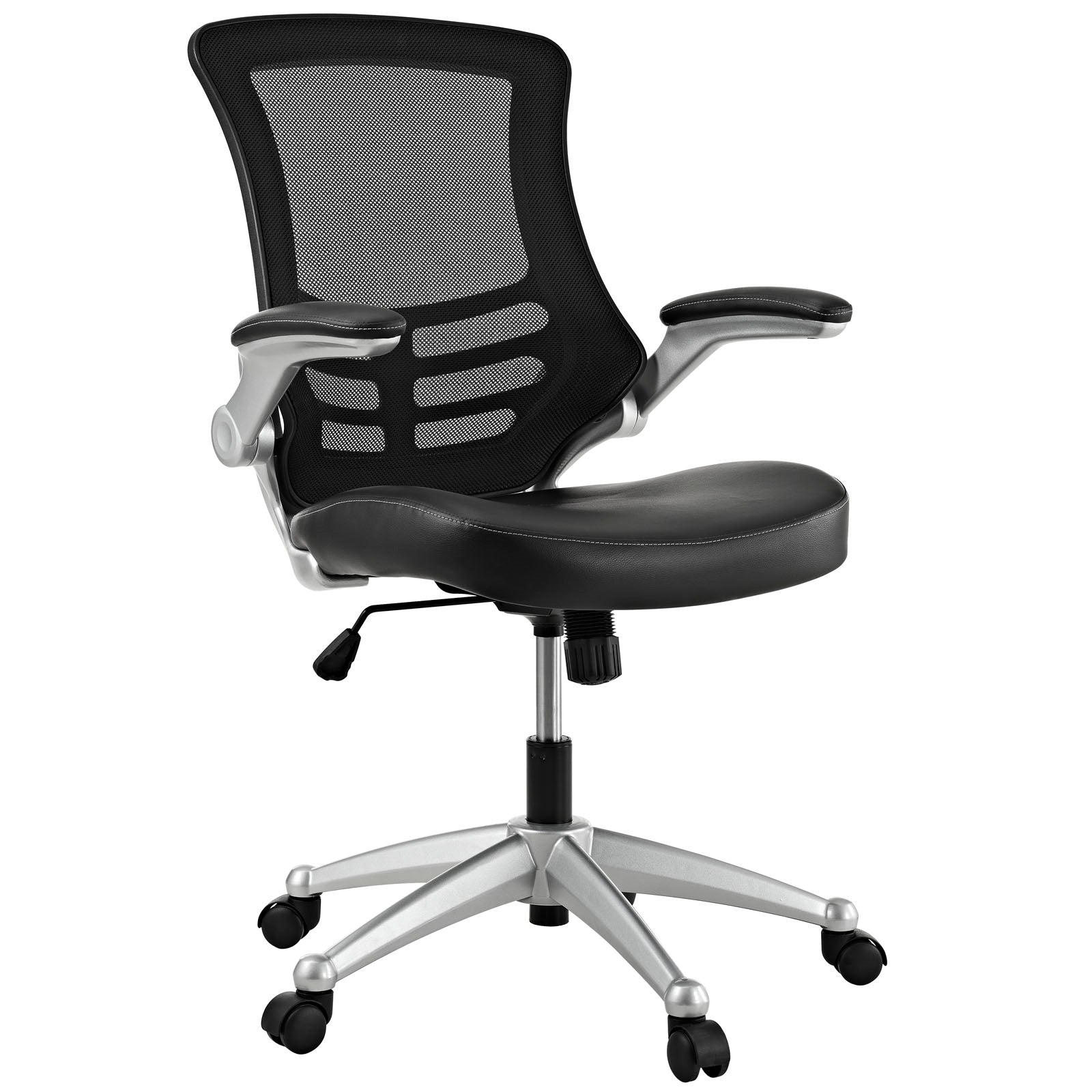 Taking you where you need when you need it most. The Sammy Mesh Office Chair is a form-fitting ergonomic chair made from the most revolutionary advances in seating today. The breathable mesh back is curved to assist back and shoulder posture, while the lower frame provides exemplary lumbar support. With flip-up arms and a leatherette padded waterfall seat, enjoy your work from a place of comprehensive comfort.The Fine Print