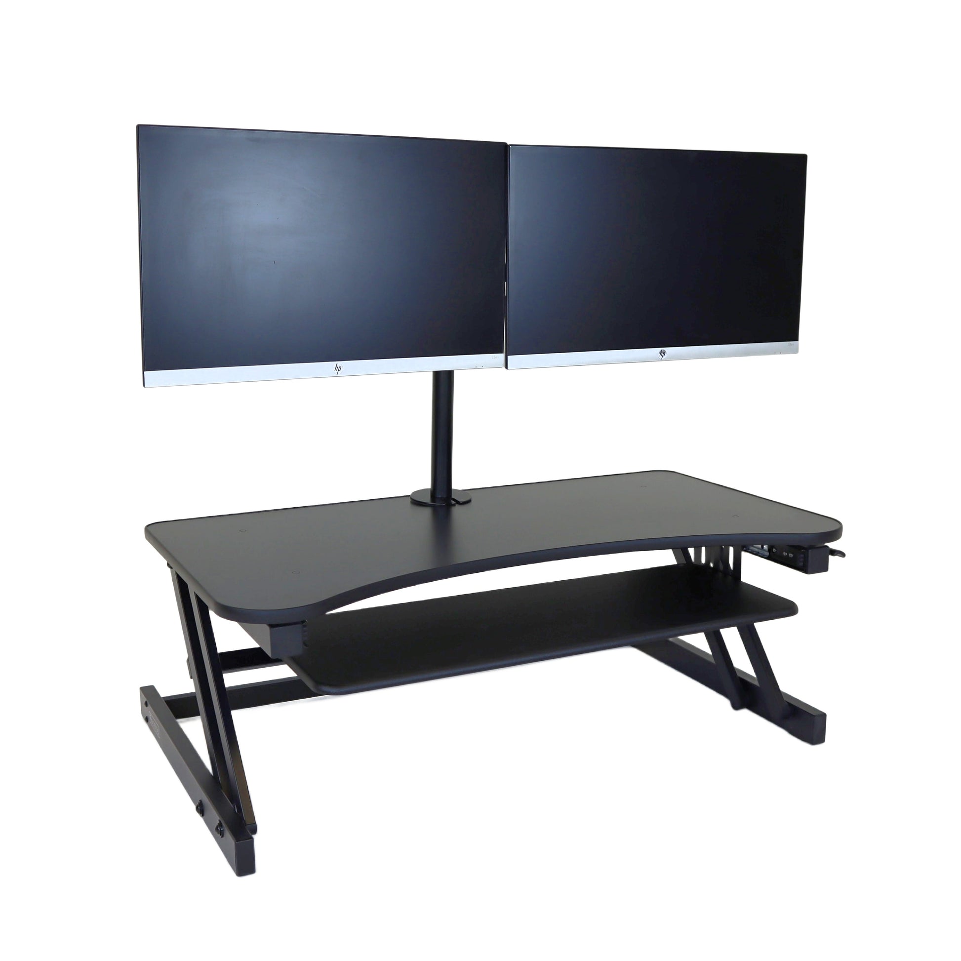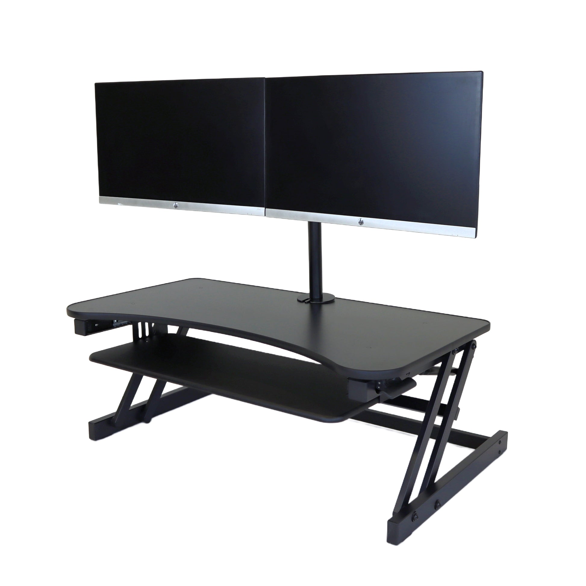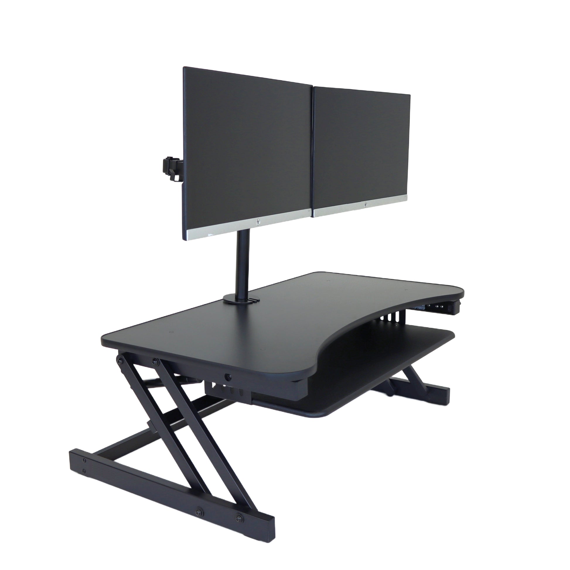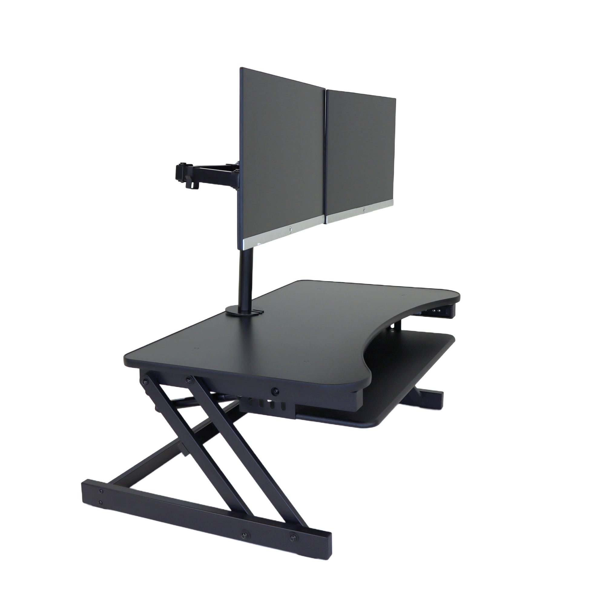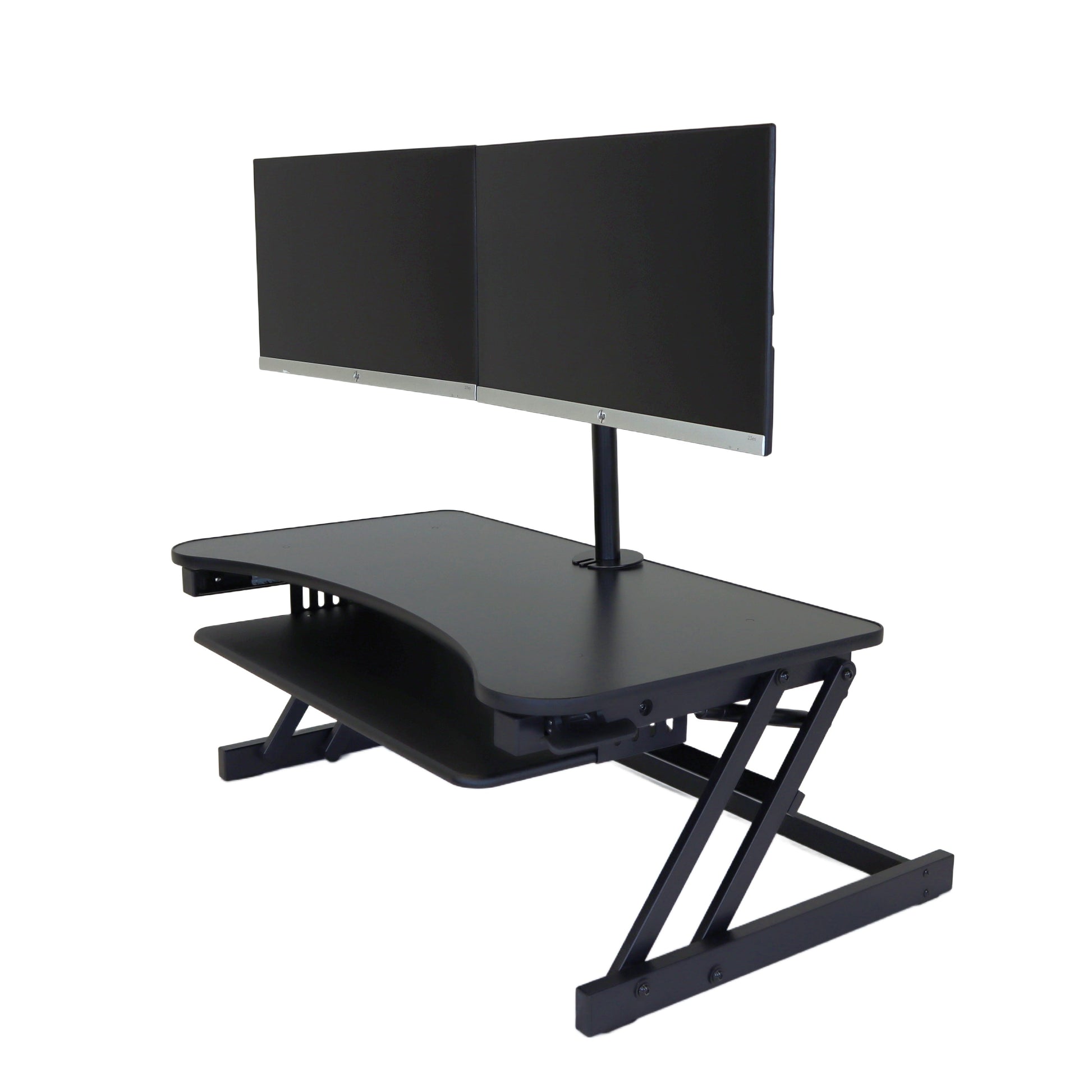 The combination product includes the spacious 37 inch wide Desk Riser Pro Z standing desk converter and the Josie dual monitor mount. Save $20 by combining these two products.