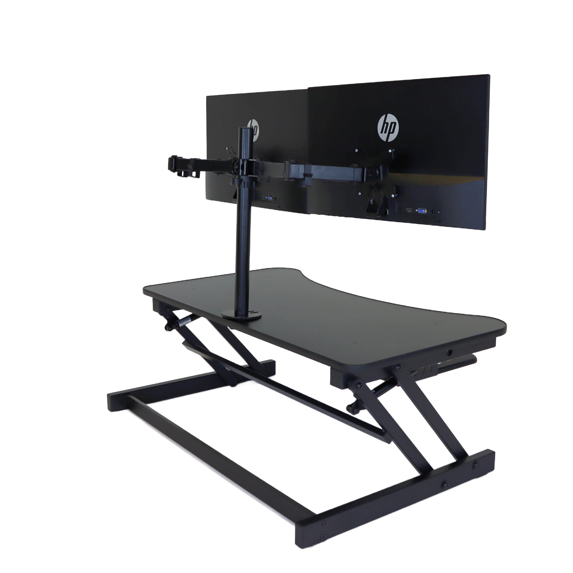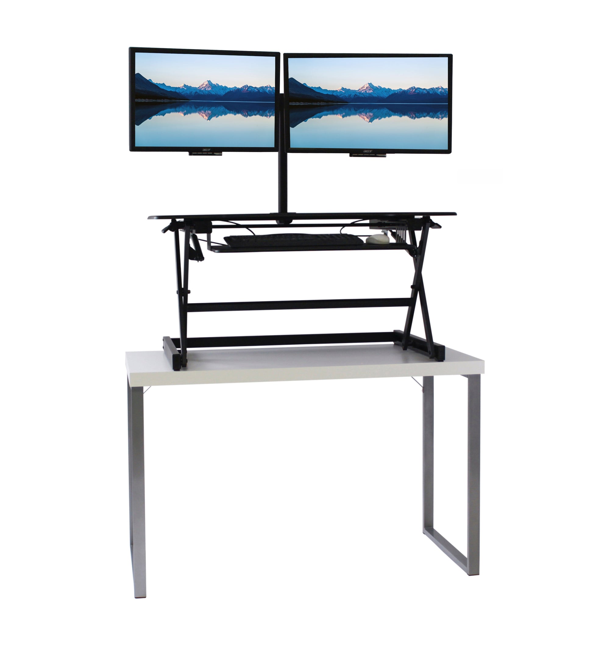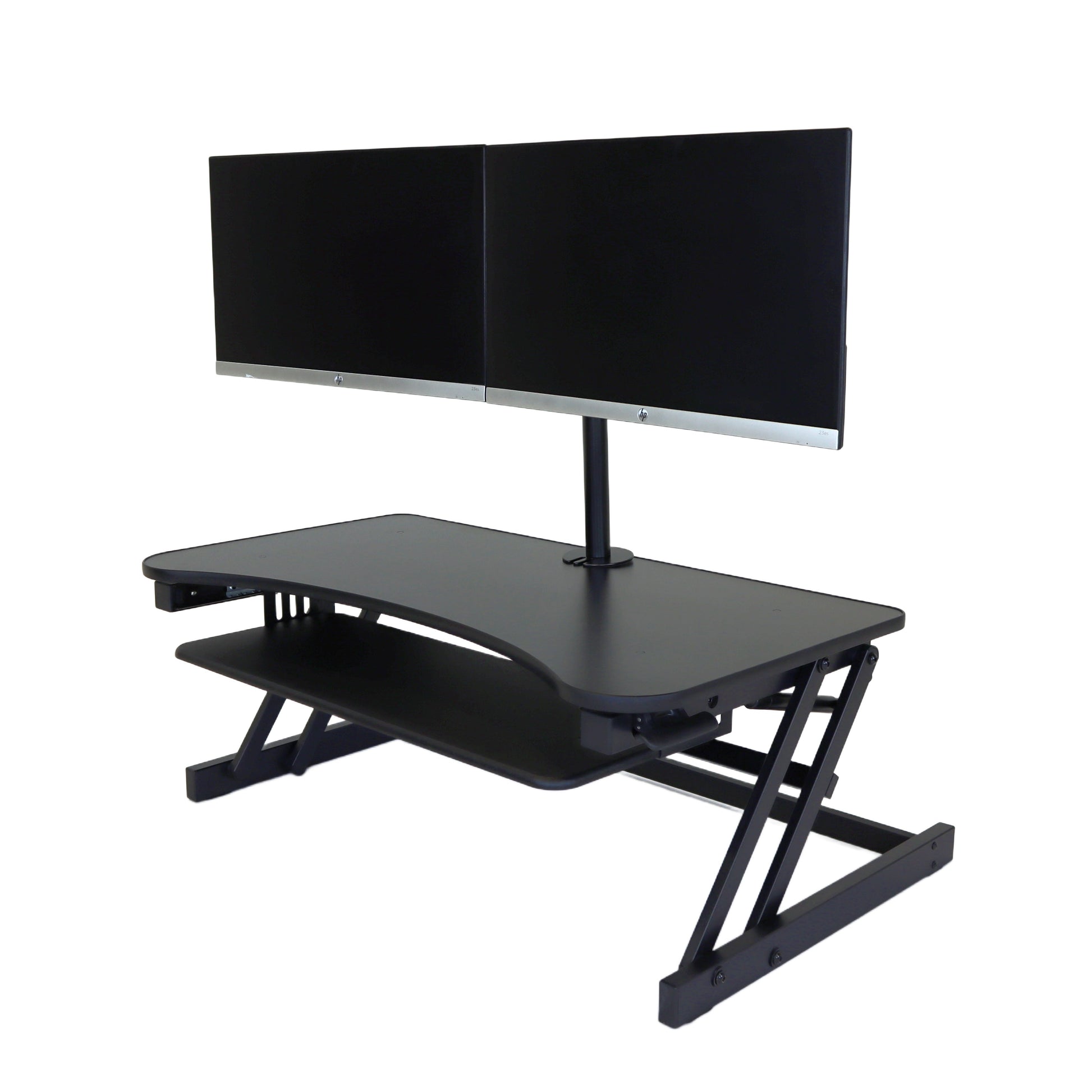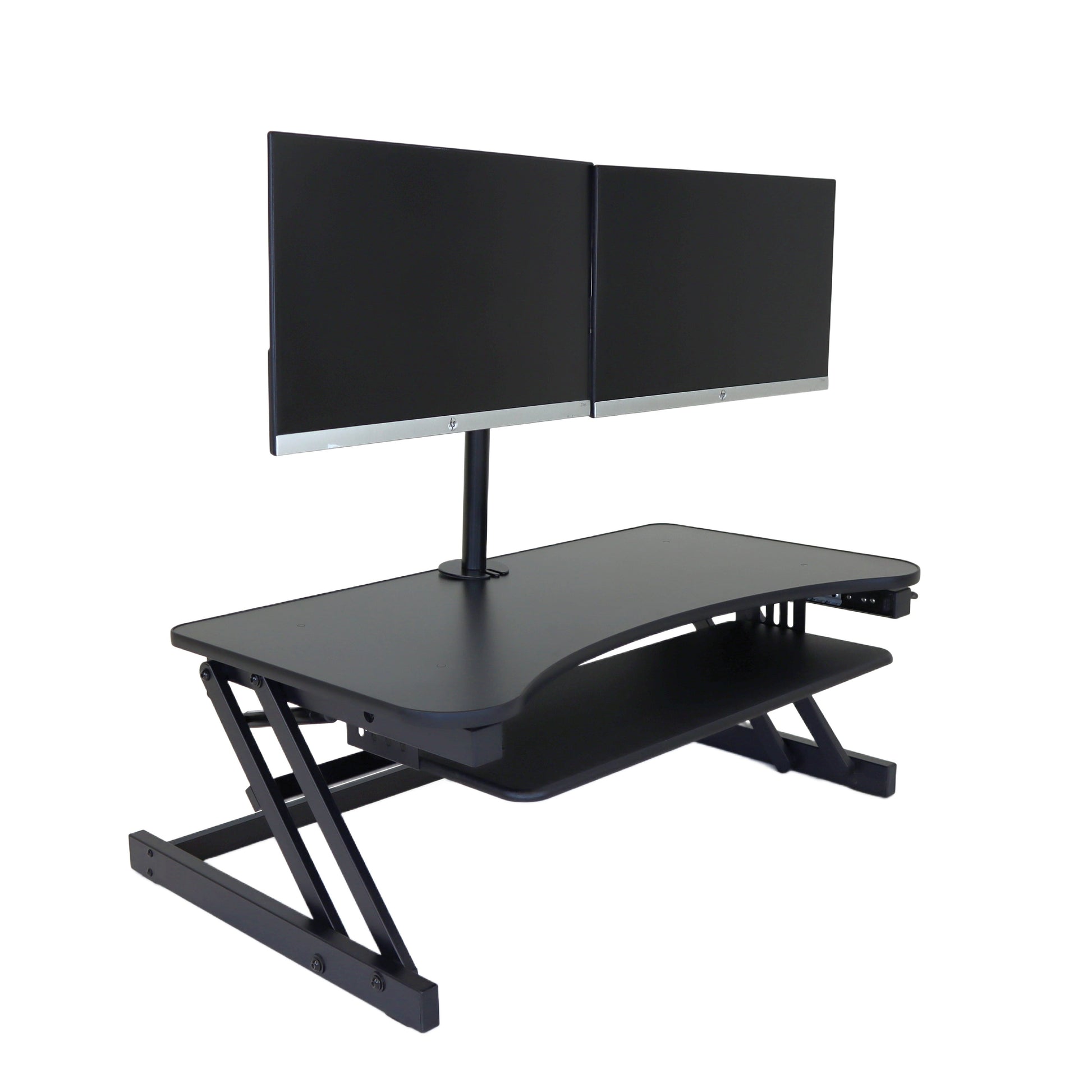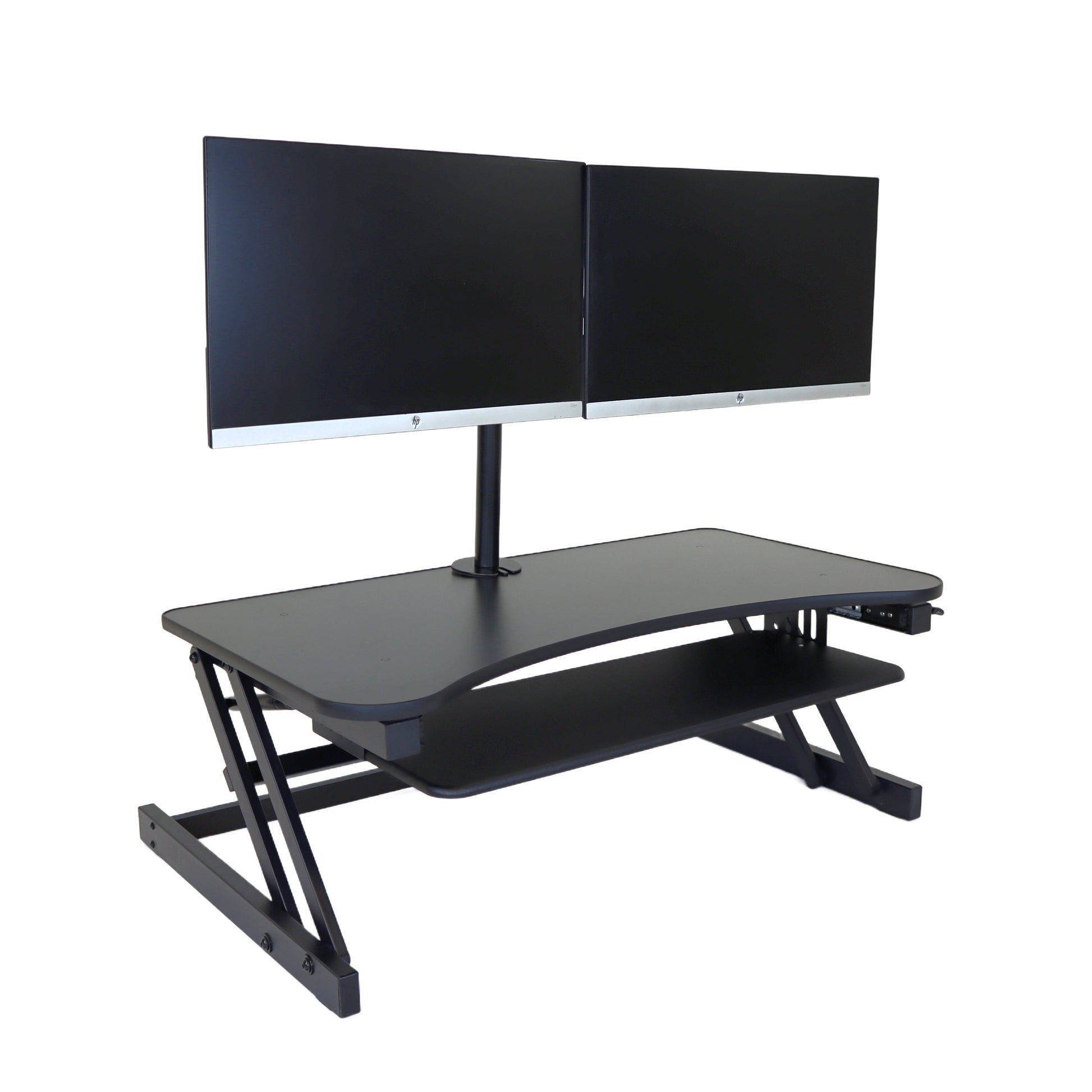 The combination product includes the spacious 37 inch wide Desk Riser Pro Z standing desk converter and the Josie dual monitor mount. Save $20 by combining these two products.