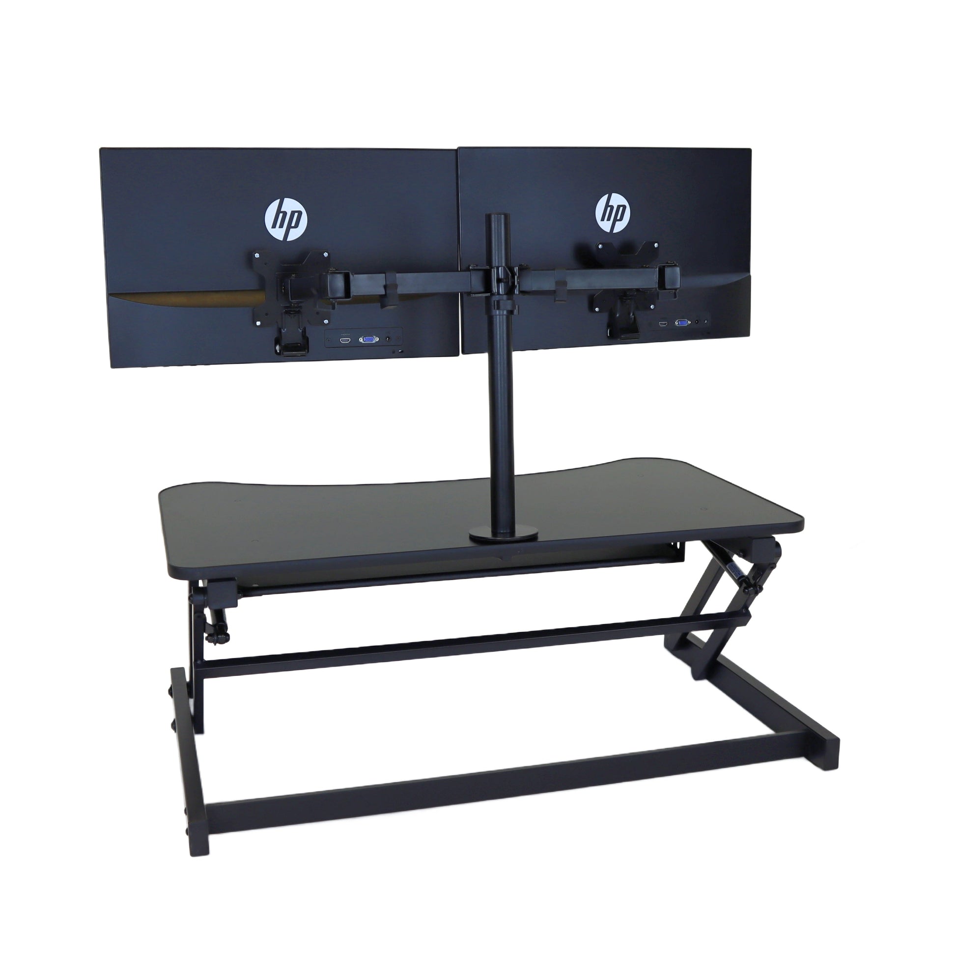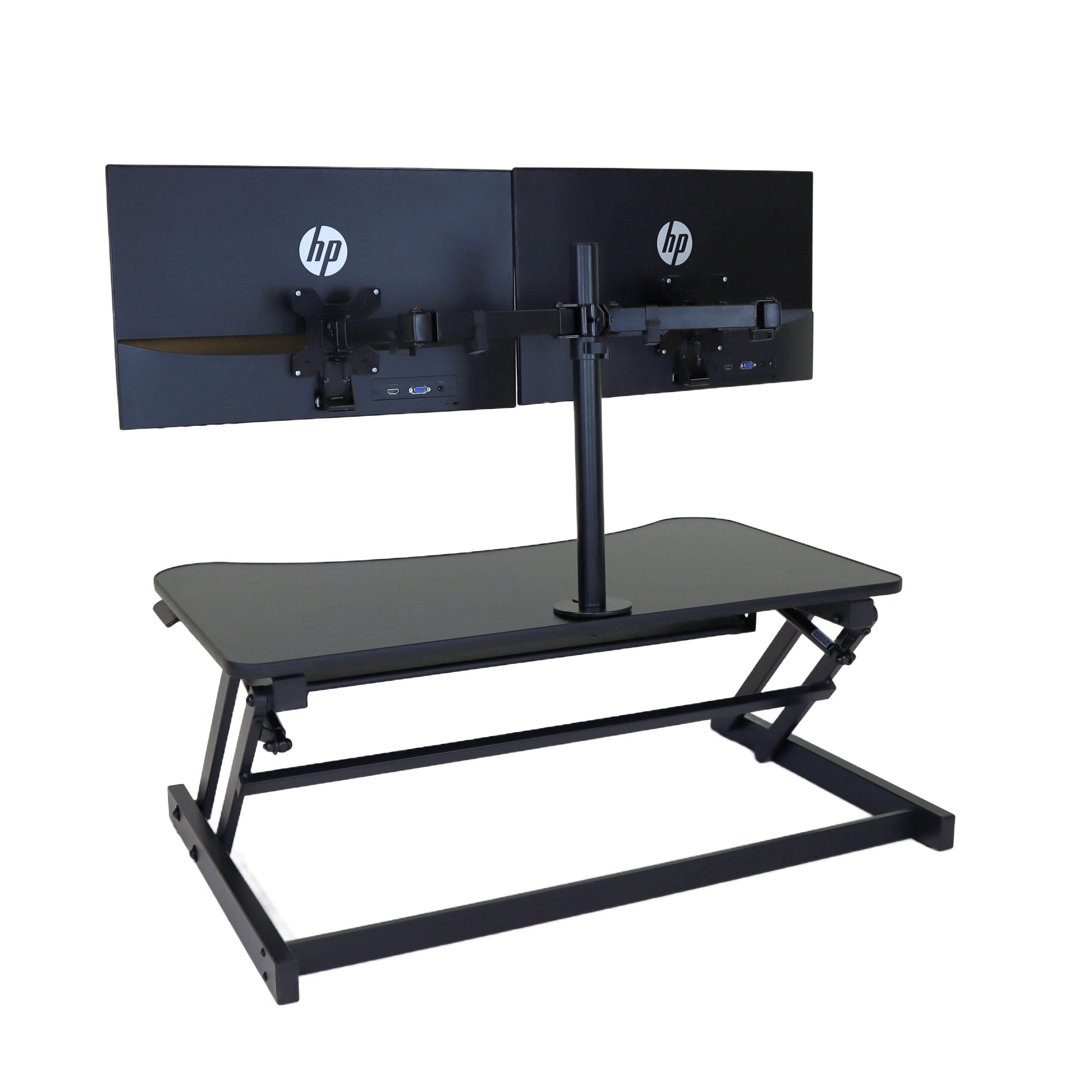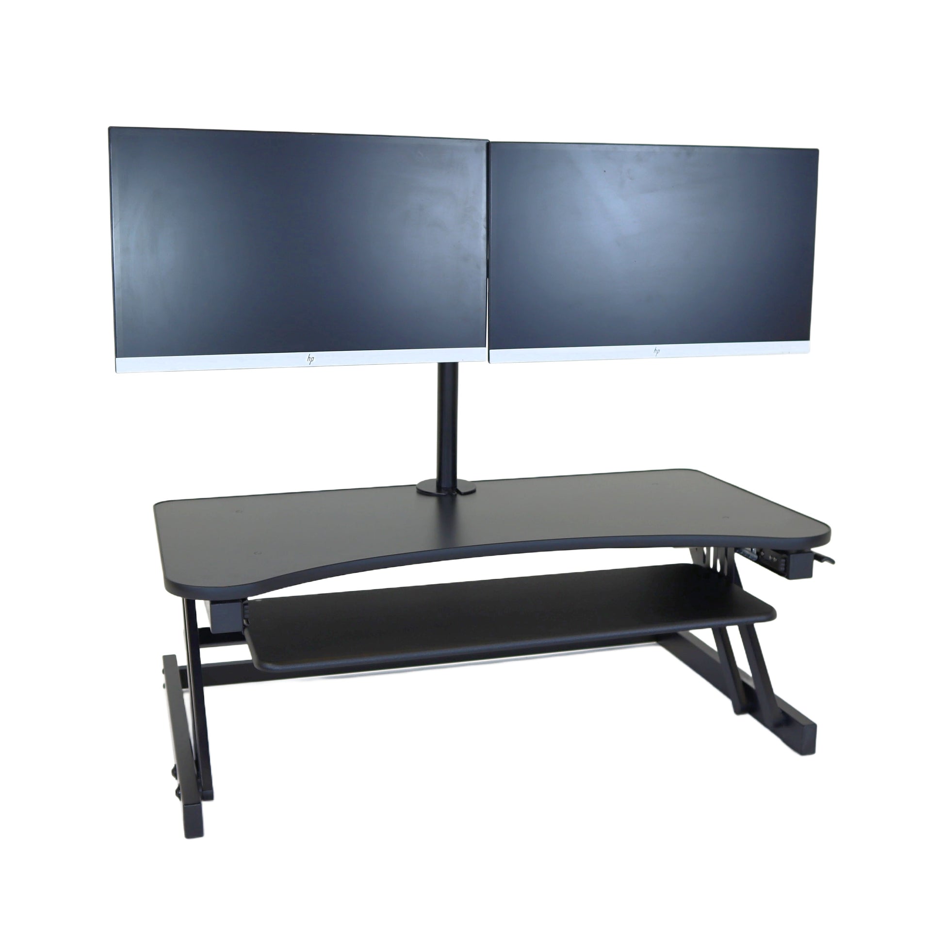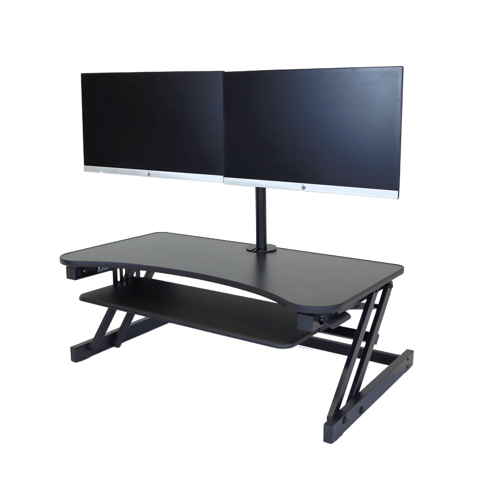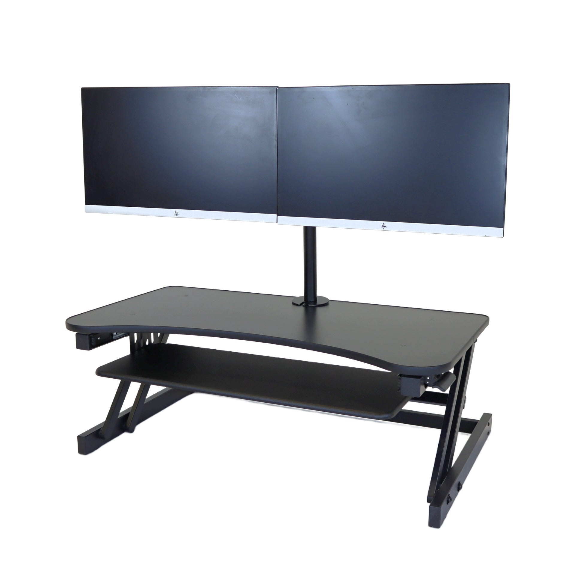 The combination product includes the spacious 37 inch wide Desk Riser Pro Z standing desk converter and the Josie dual monitor mount. Save $20 by combining these two products.