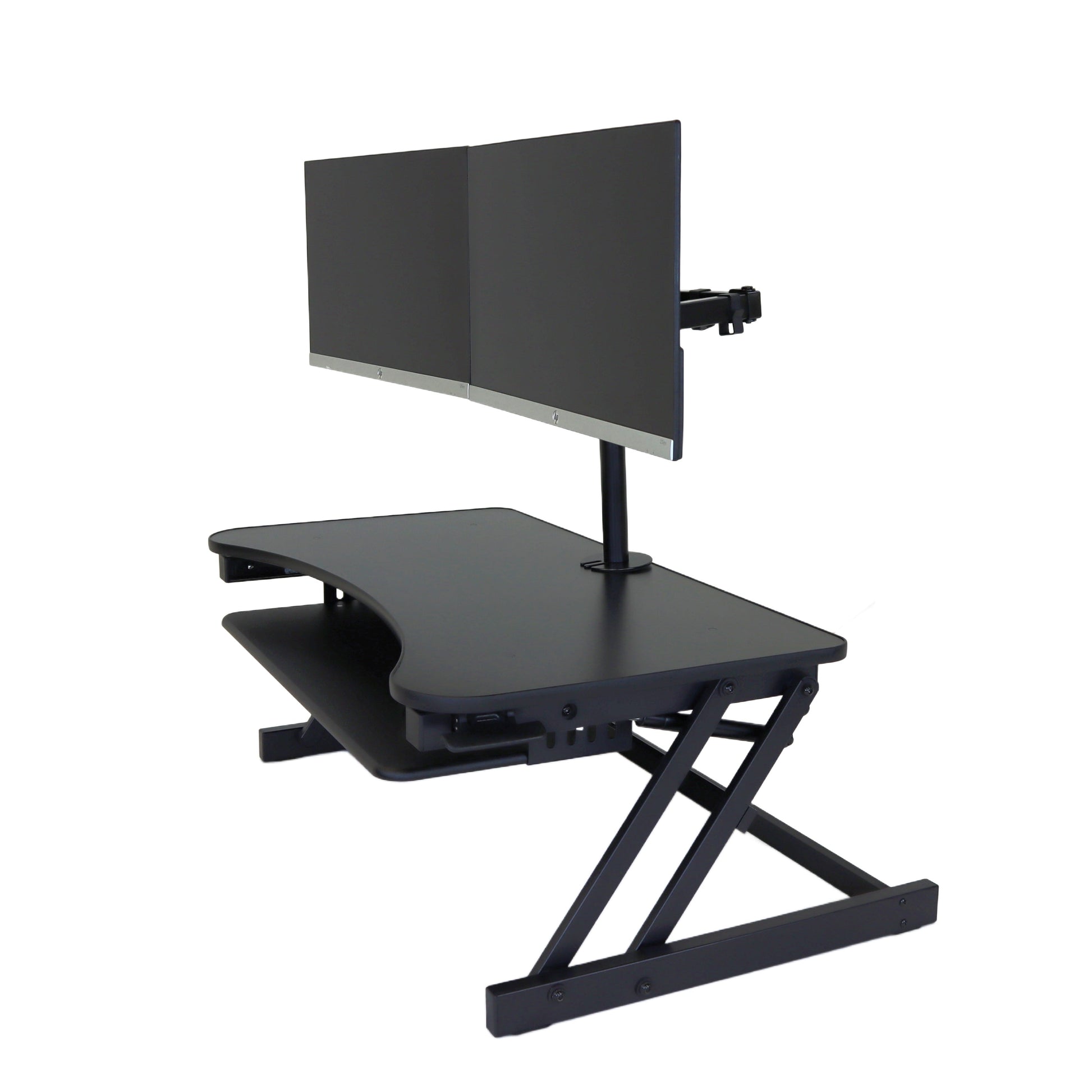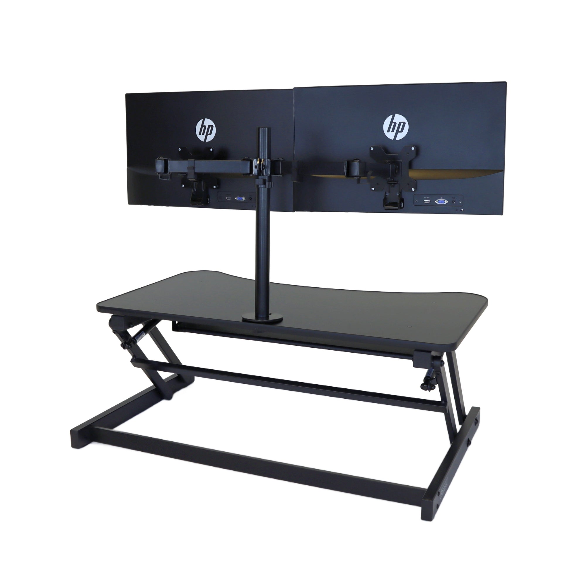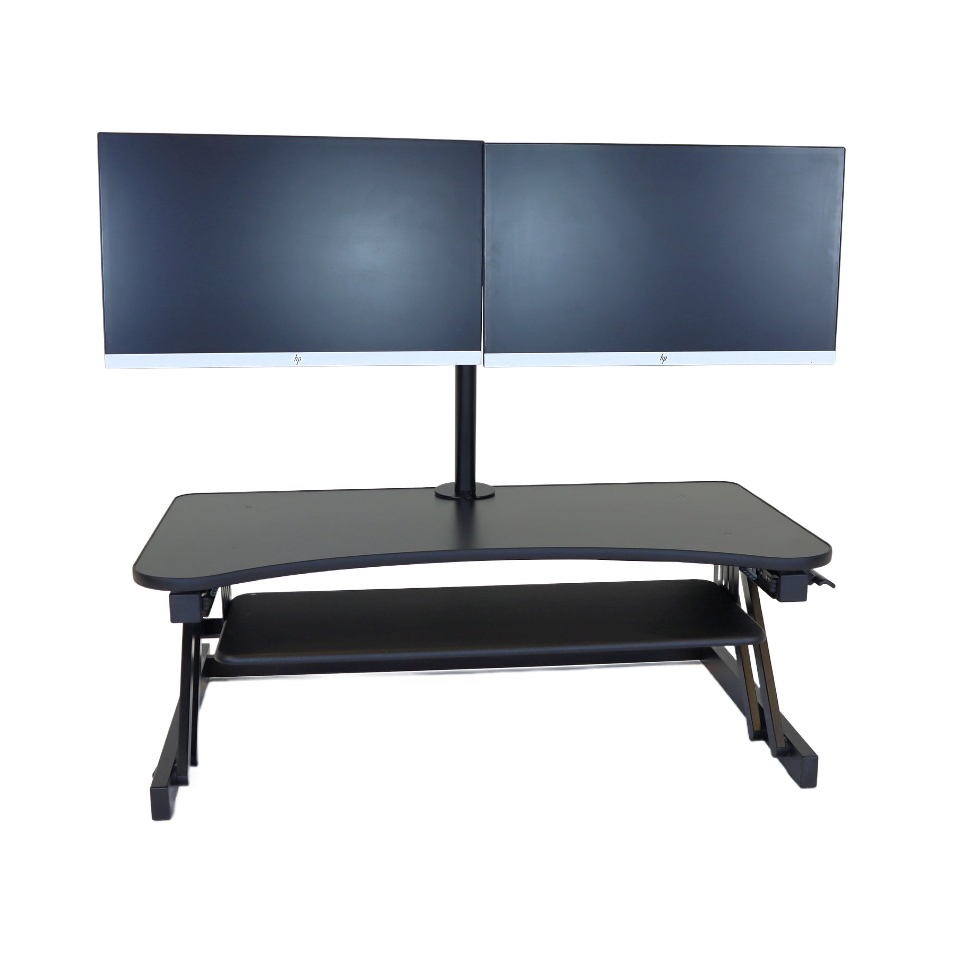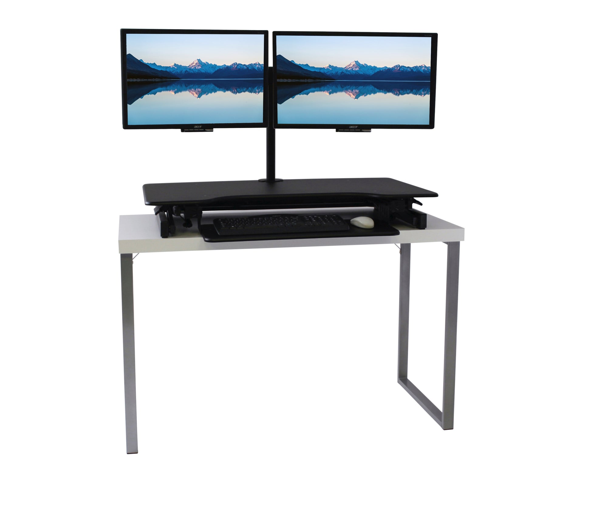 The combination product includes the spacious 37 inch wide Desk Riser Pro Z standing desk converter and the Josie dual monitor mount. Save $20 by combining these two products.