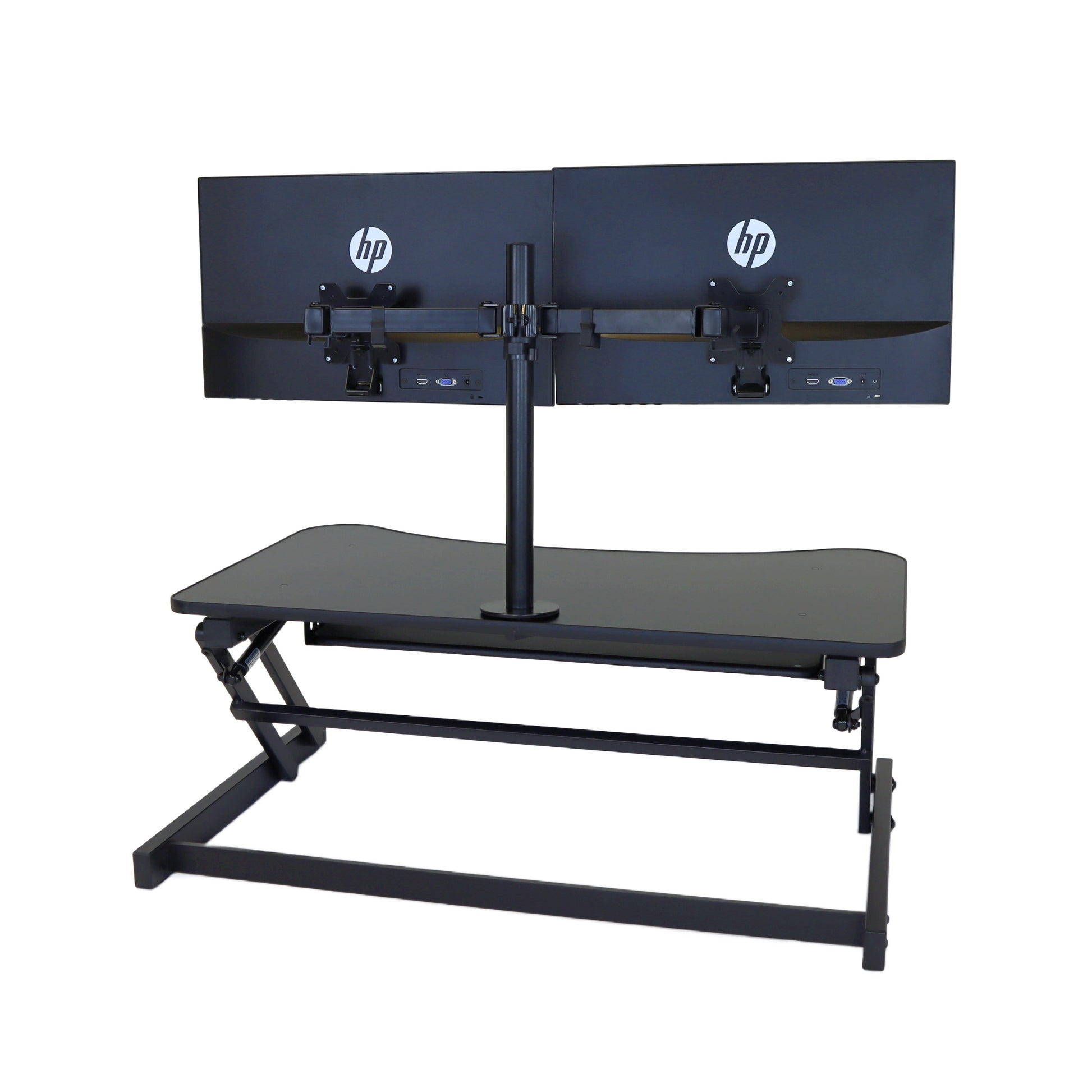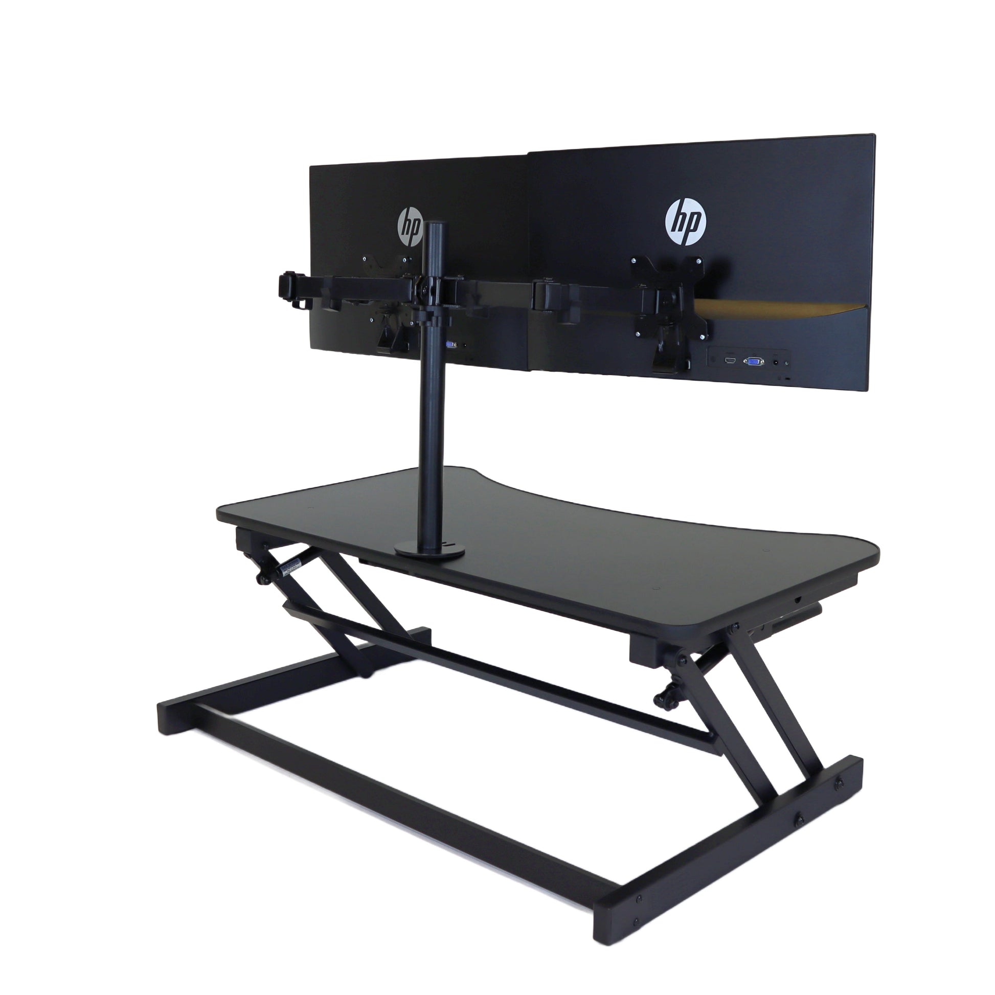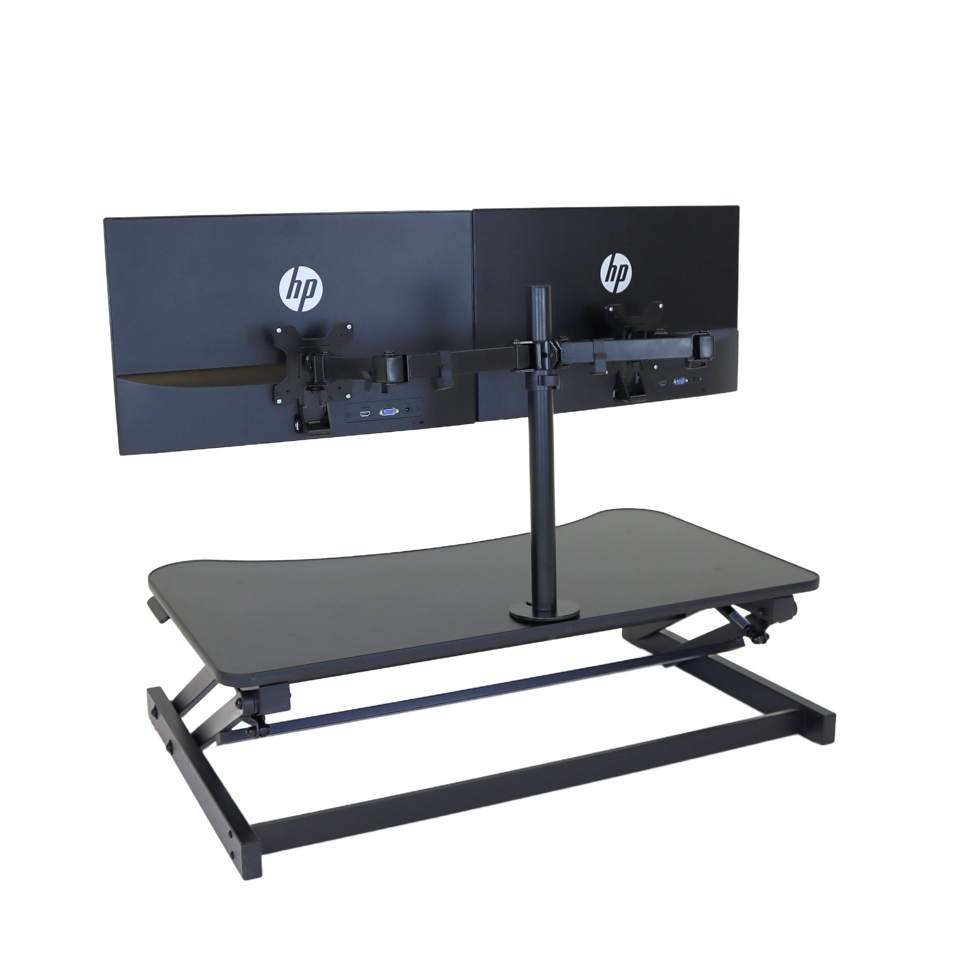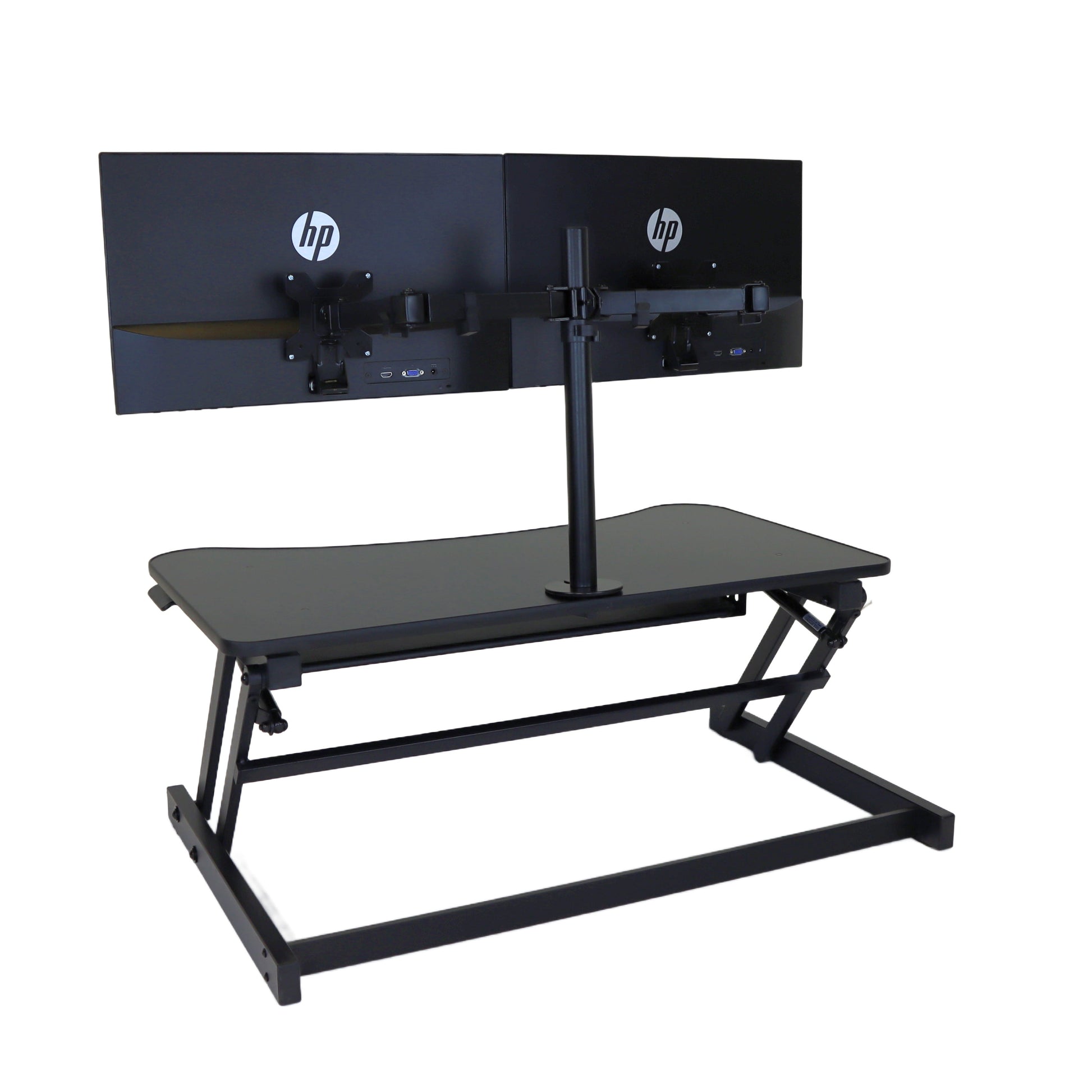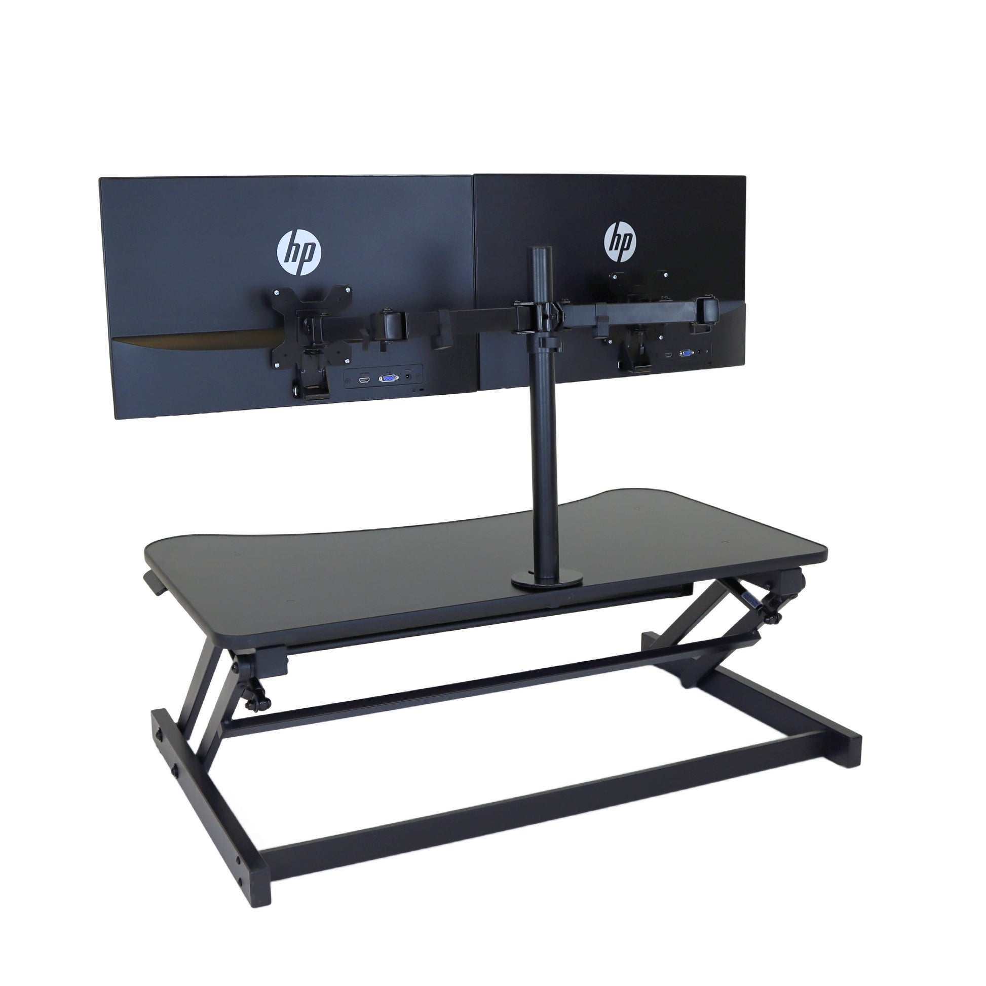 The combination product includes the spacious 37 inch wide Desk Riser Pro Z standing desk converter and the Josie dual monitor mount. Save $20 by combining these two products.