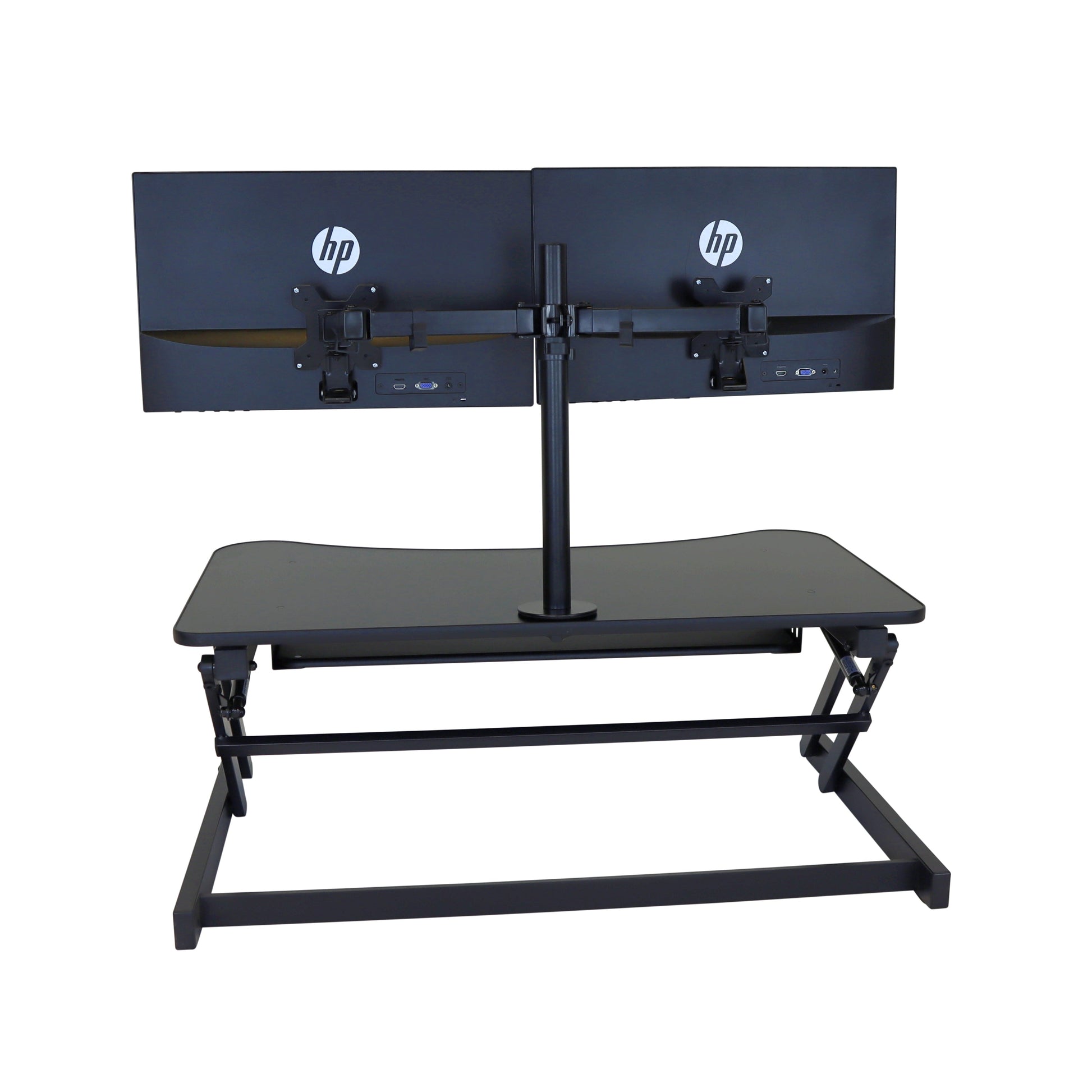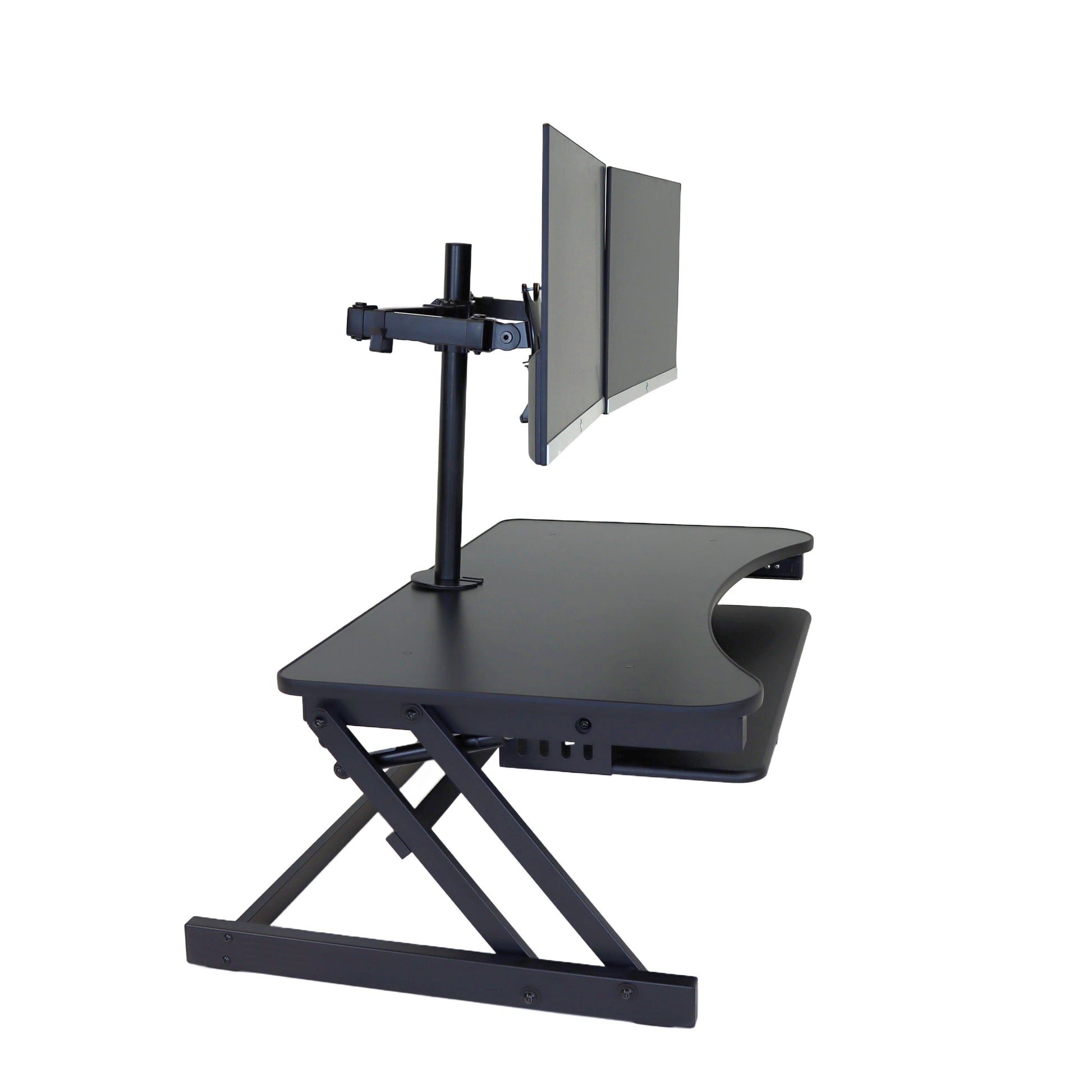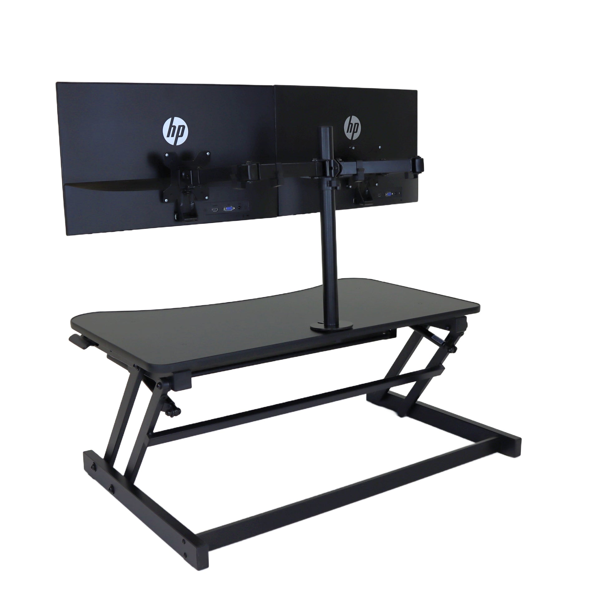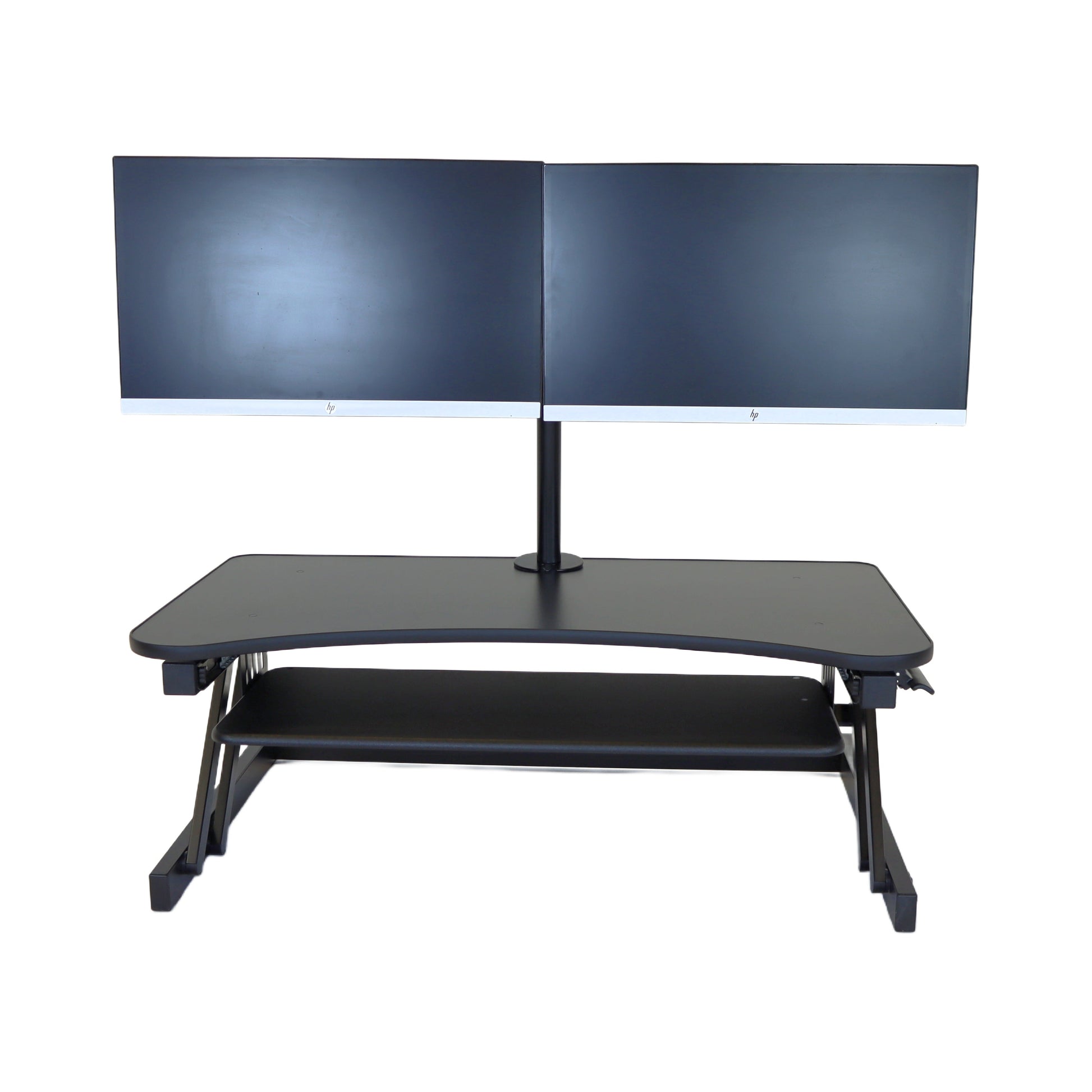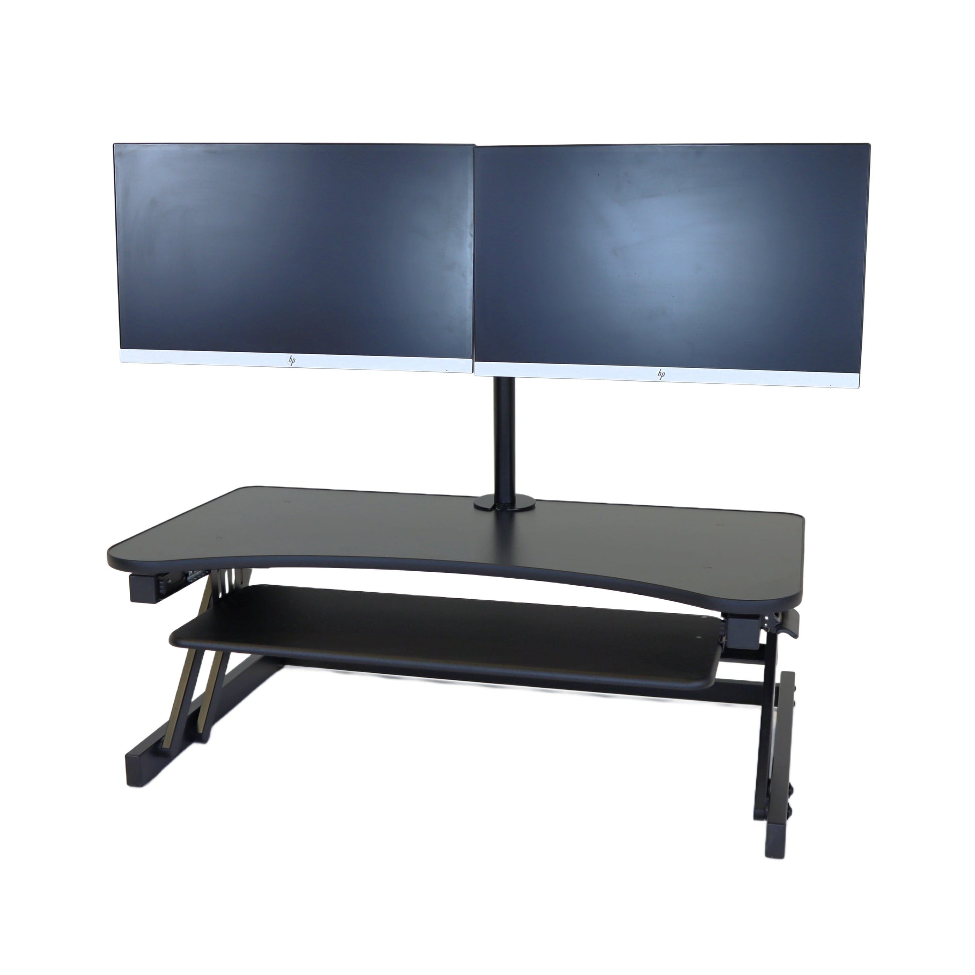 The combination product includes the spacious 37 inch wide Desk Riser Pro Z standing desk converter and the Josie dual monitor mount. Save $20 by combining these two products.