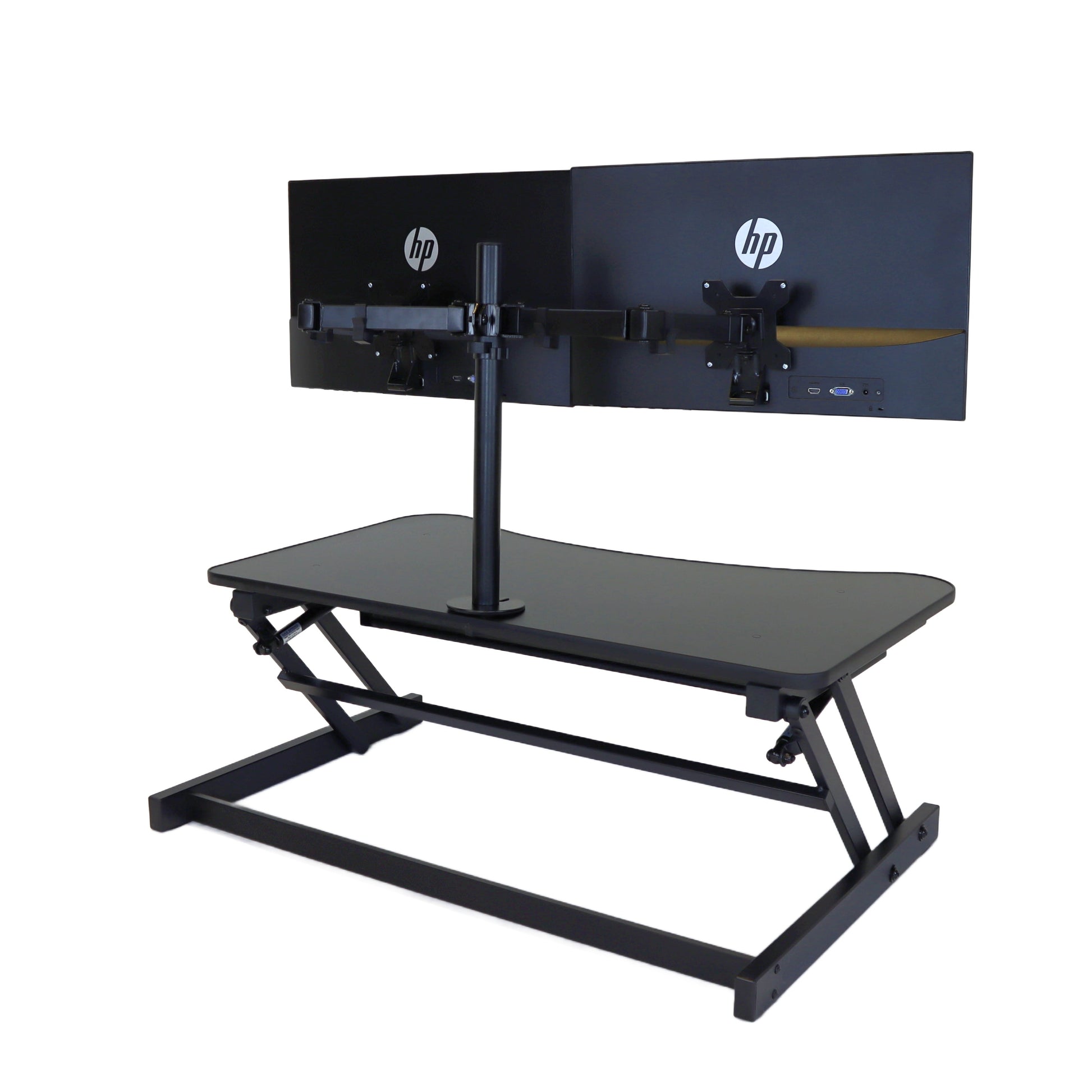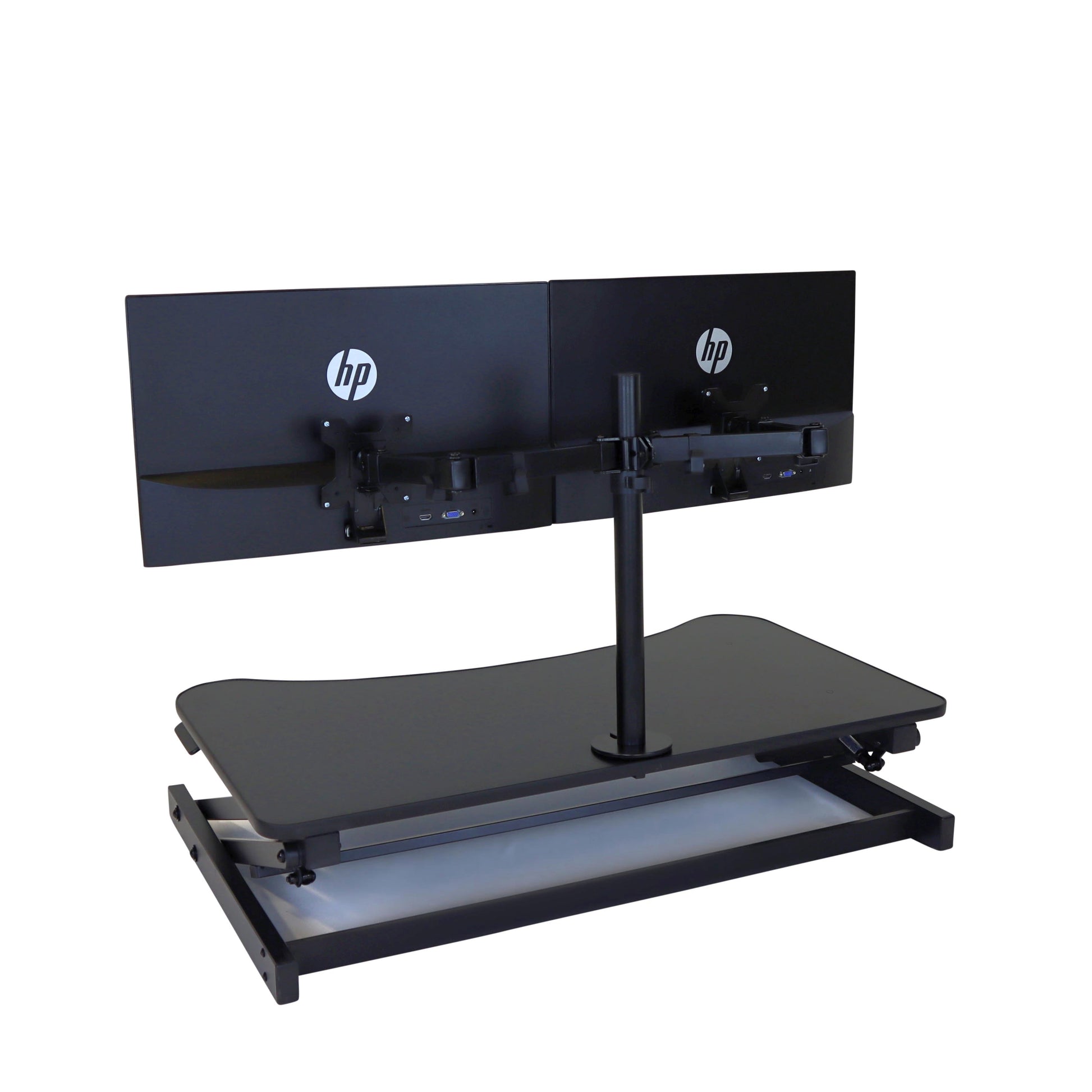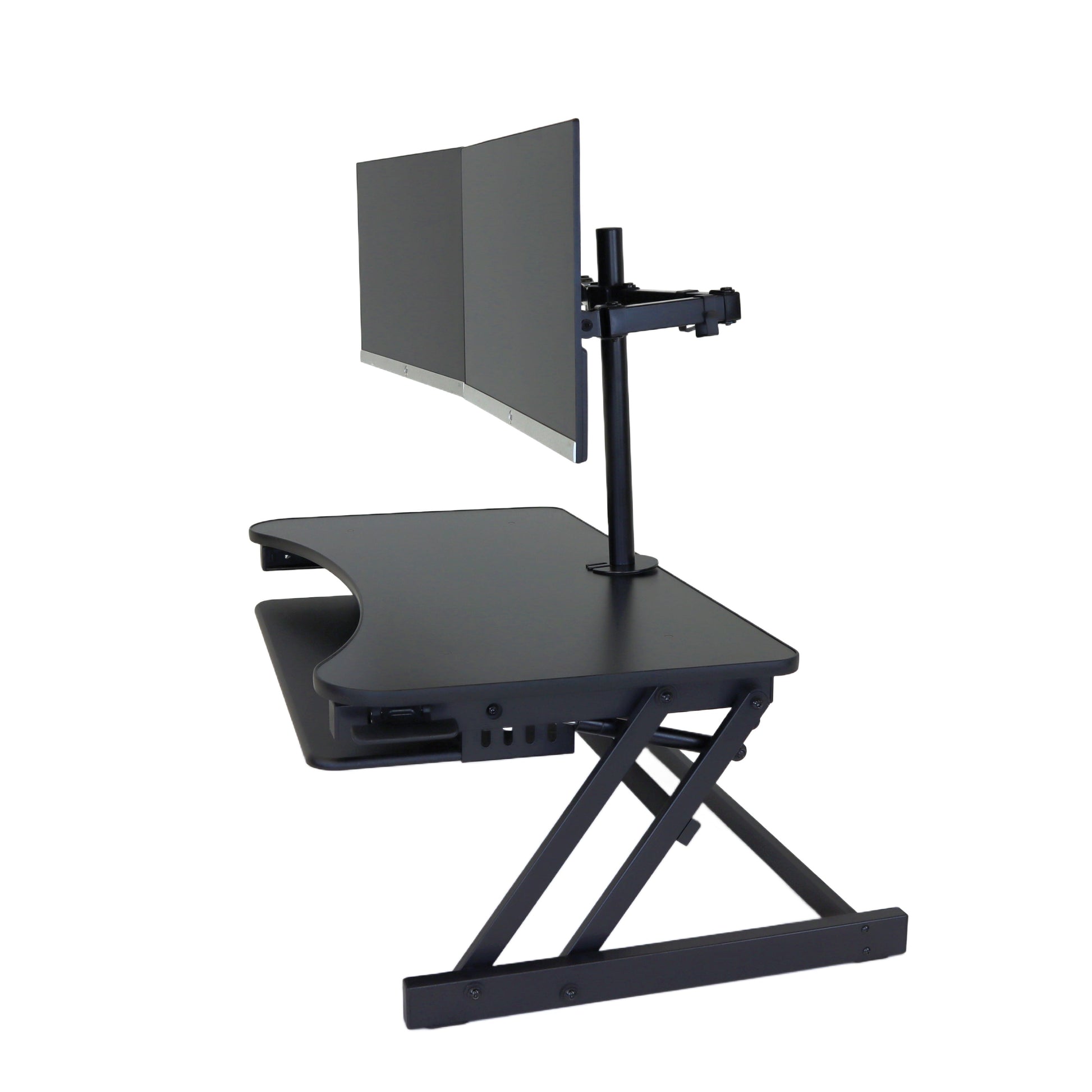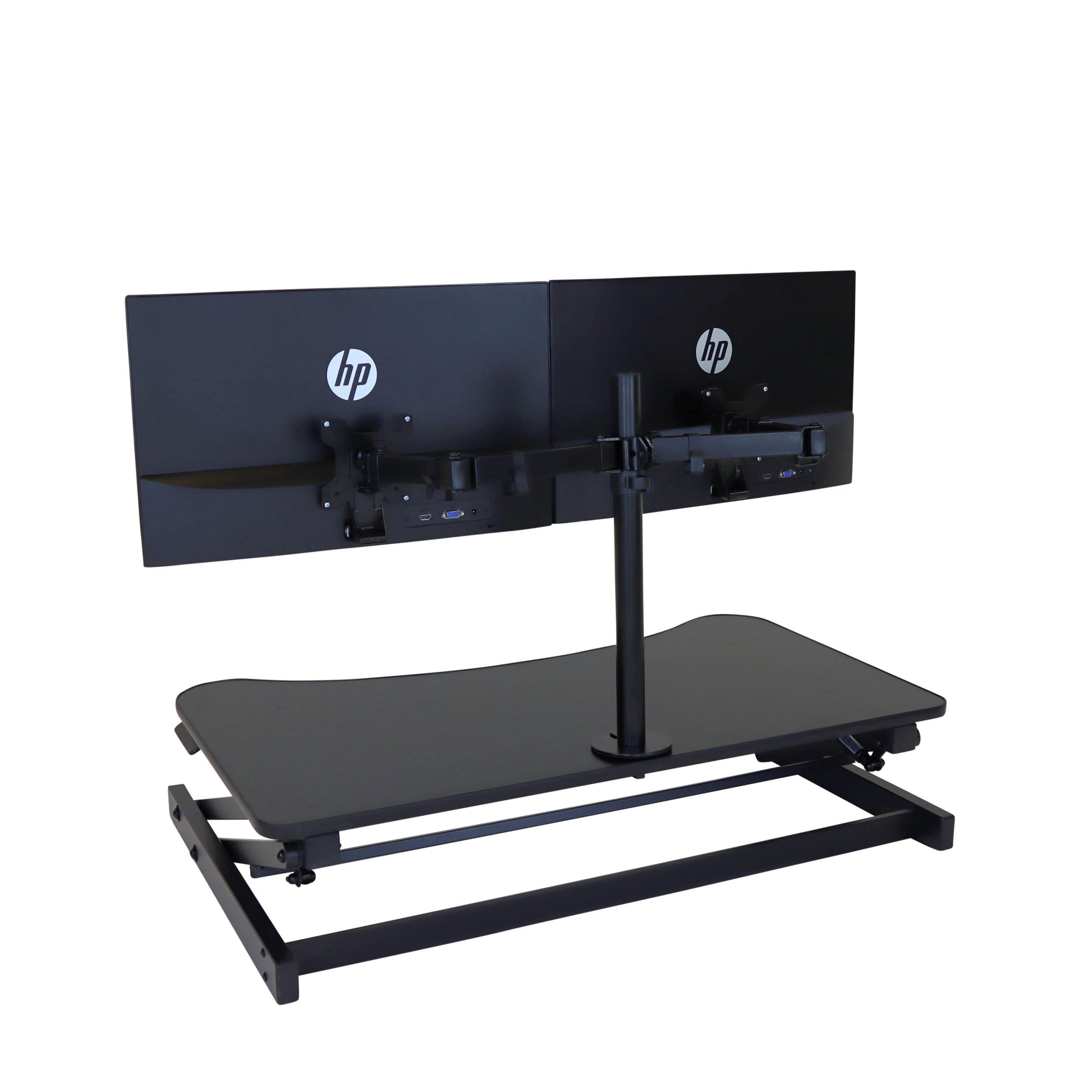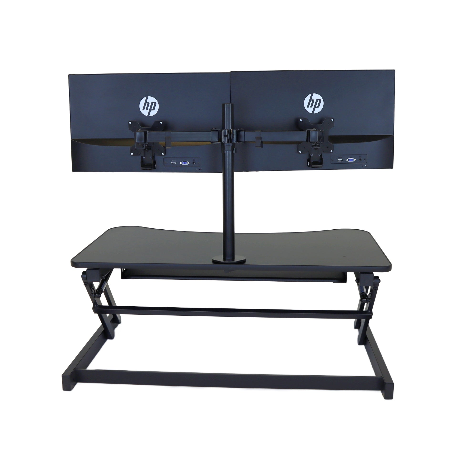 The combination product includes the spacious 37 inch wide Desk Riser Pro Z standing desk converter and the Josie dual monitor mount. Save $20 by combining these two products.